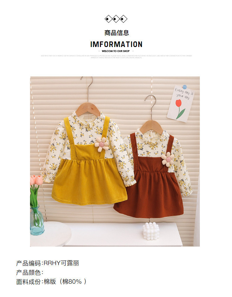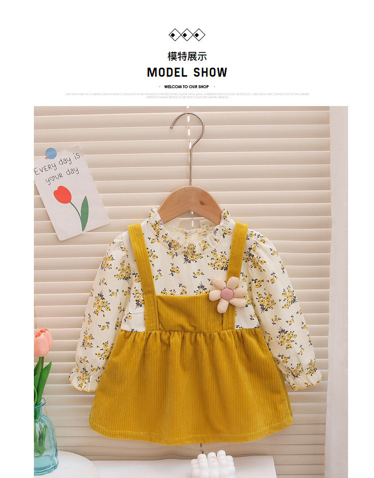 소녀의 원피스 봄 새로운 스타일 소녀의 아기 공주 원피스 봄과 가을 한국 스타일 어린이 꽃 스커트 TikTok스토어 가기