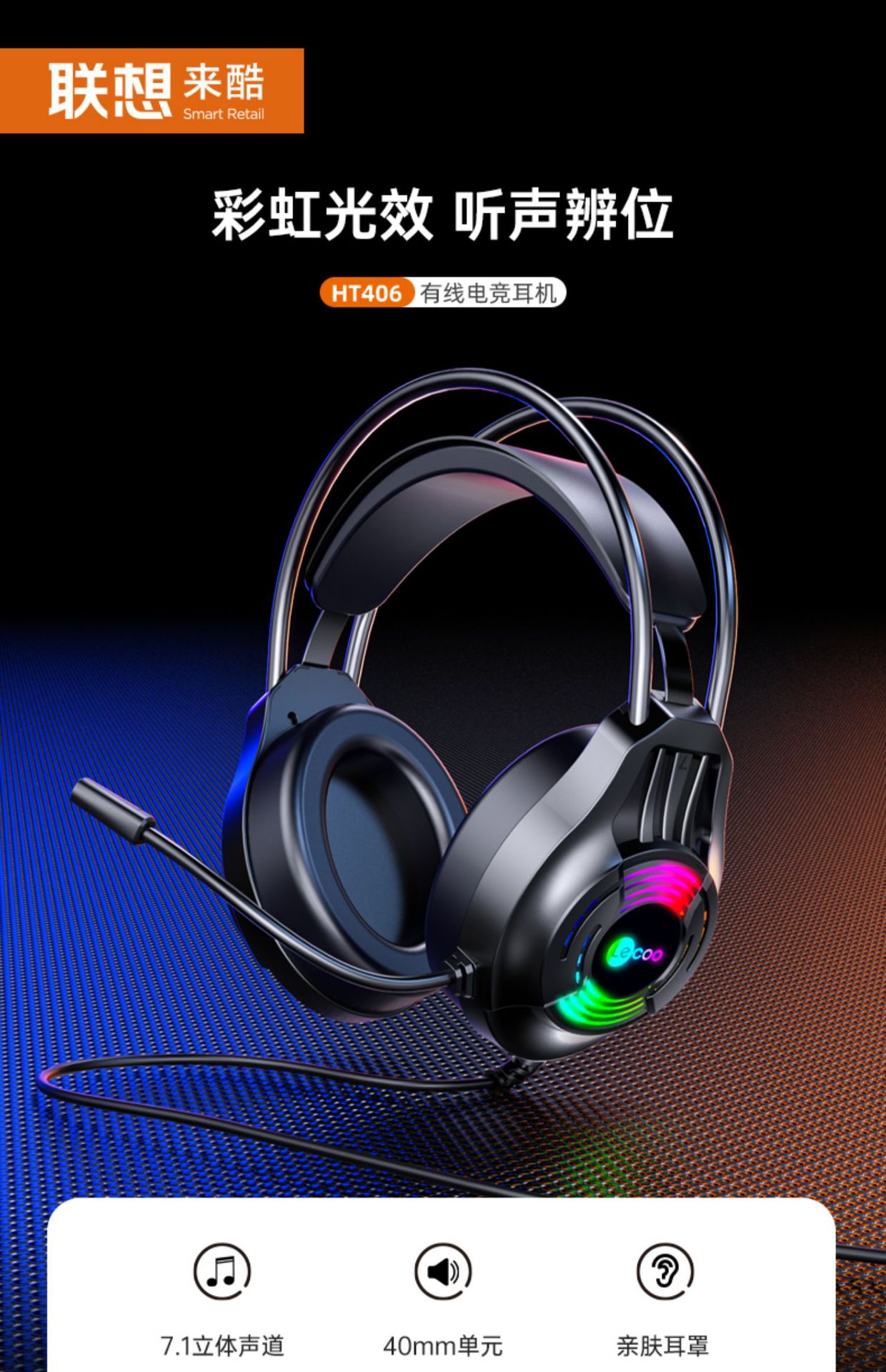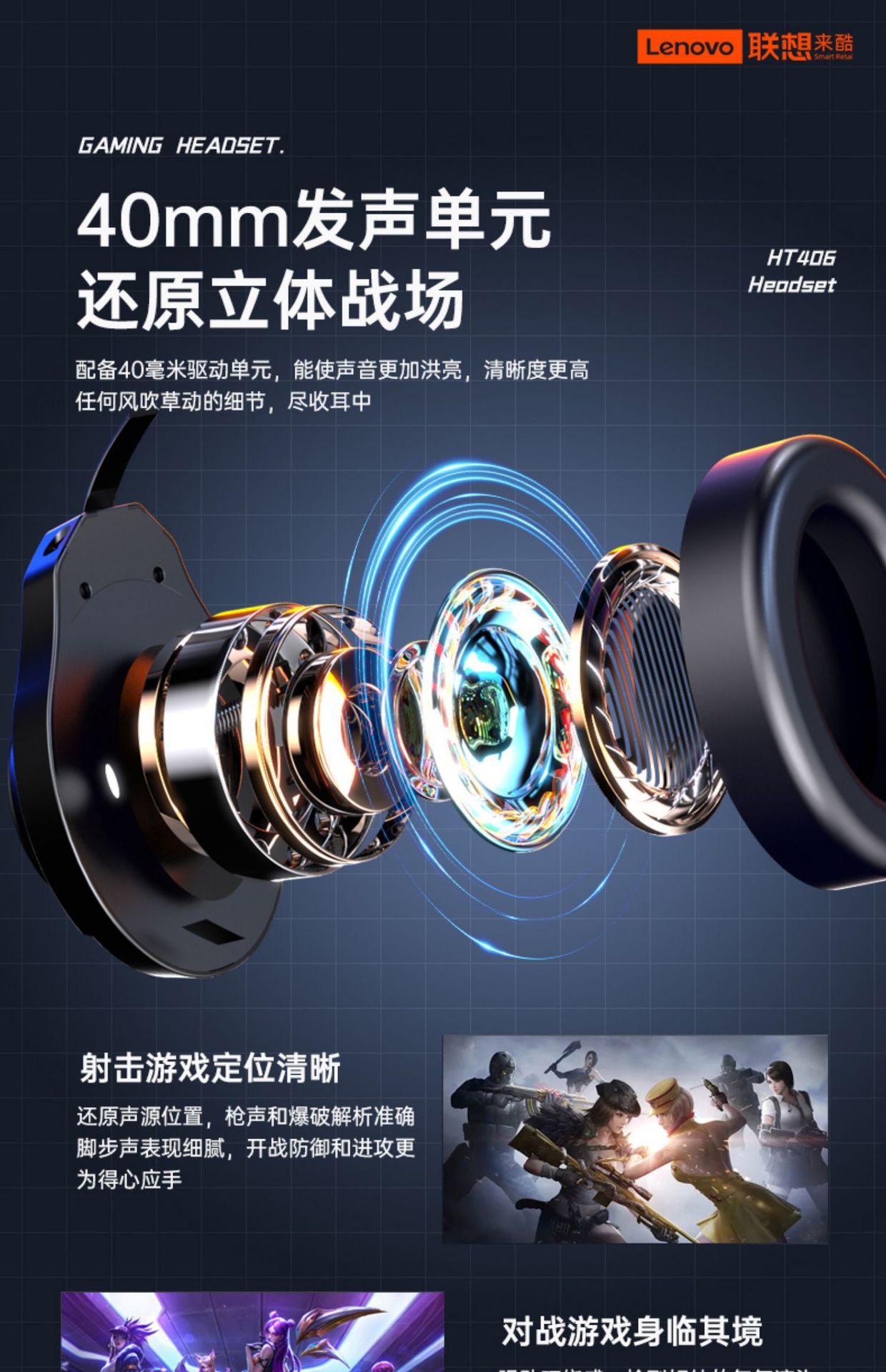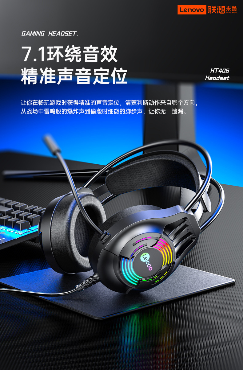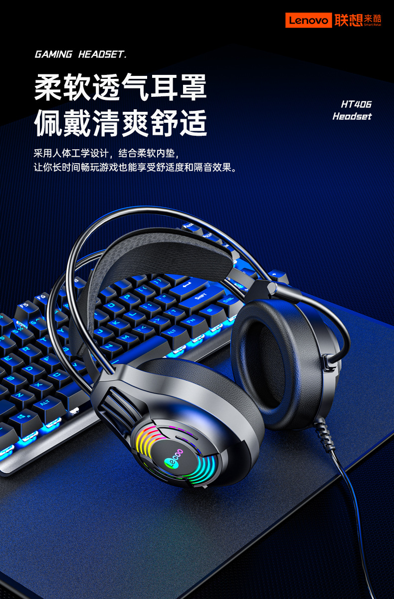 컴퓨터 헤드 마운트 비디오 게임 전용 노이즈 제거 유선 헤드셋 용 HT406 게임 헤드셋을 냉각시키는 Lenovo스토어 가기