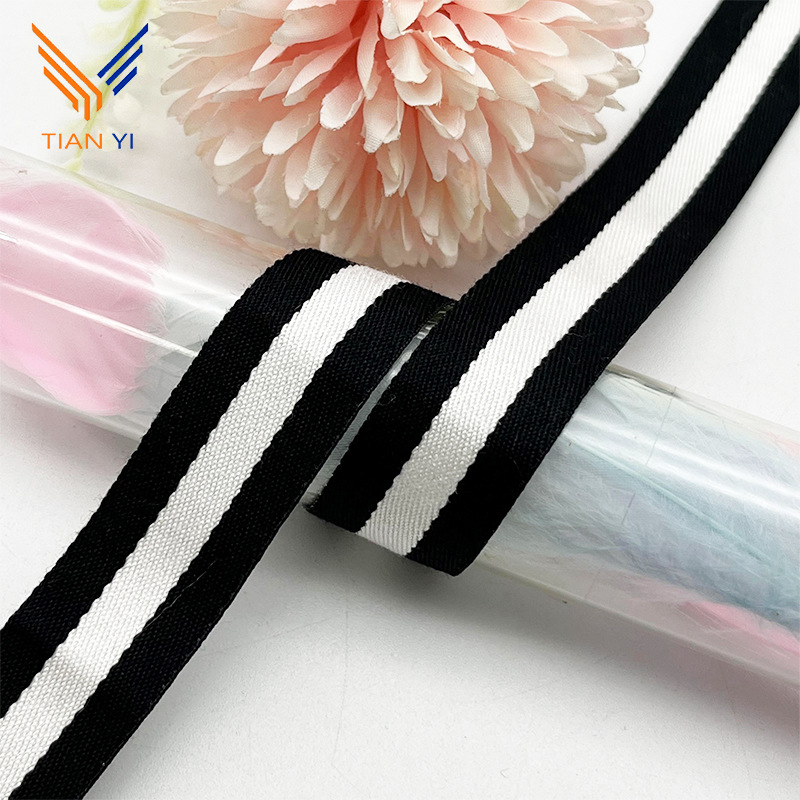 흑백 중간 머서화 코튼 능직 자카드 리본 홈 섬유 수하물 신발 및 모자 실 캡 가장자리 벨트 의류 액세서리
