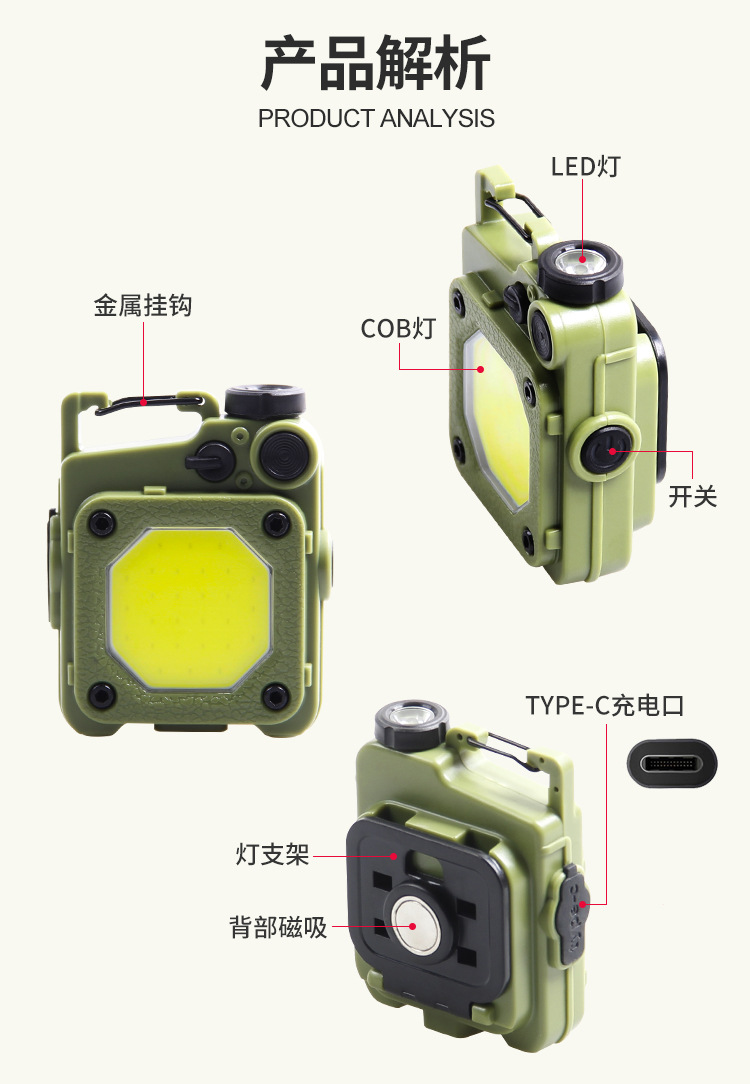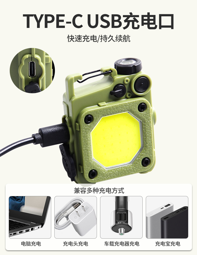 크로스보더 미니 휴대용 포켓 라이트 Type-c 충전식 작업등 비상 휴대용 라이트 슈퍼 브라이트 야외 캠핑등