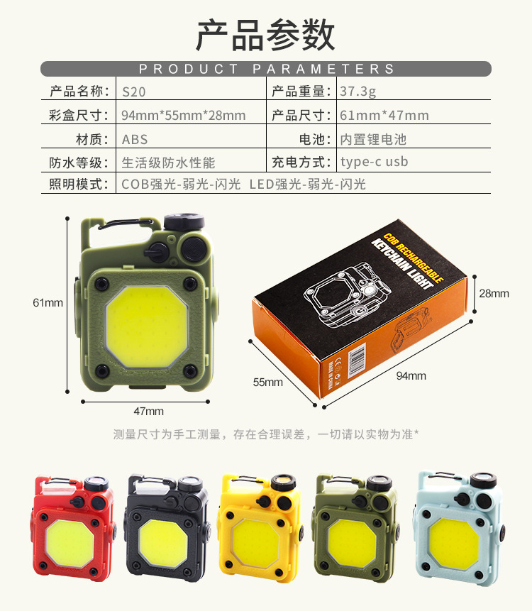 크로스보더 미니 휴대용 포켓 라이트 Type-c 충전식 작업등 비상 휴대용 라이트 슈퍼 브라이트 야외 캠핑등스토어 가기
