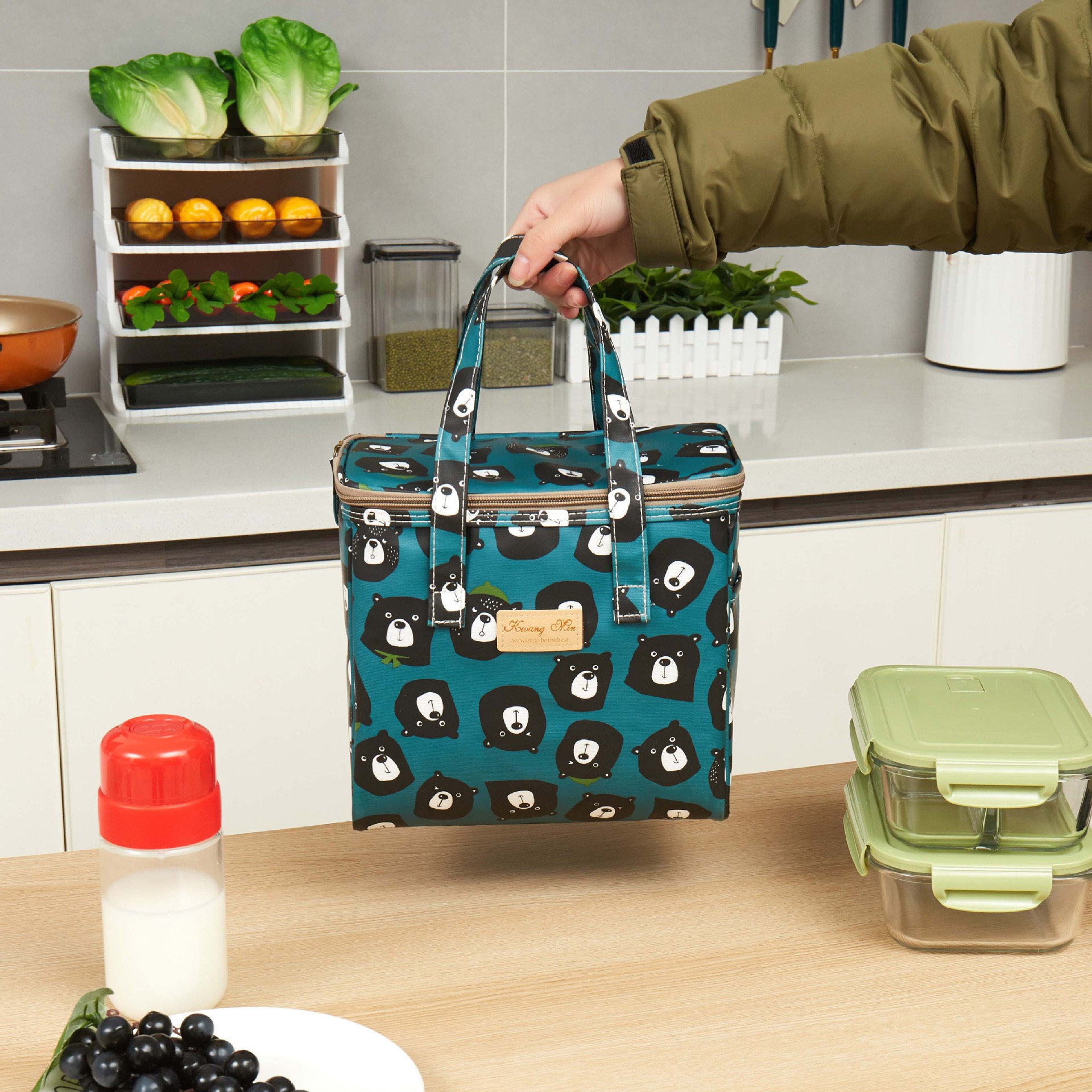 신형 아이스백 야외 피크닉 가방 대용량 방수 학생 도시락 가방 휴대용 만화 다기능 단열 테이크 아웃스토어 가기