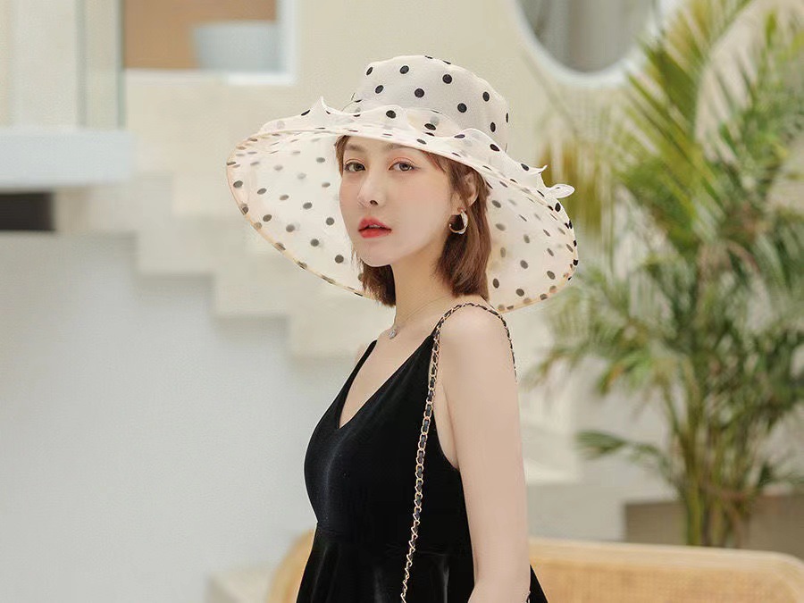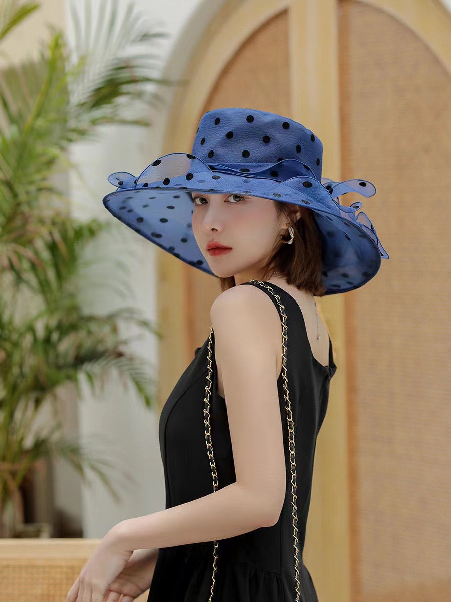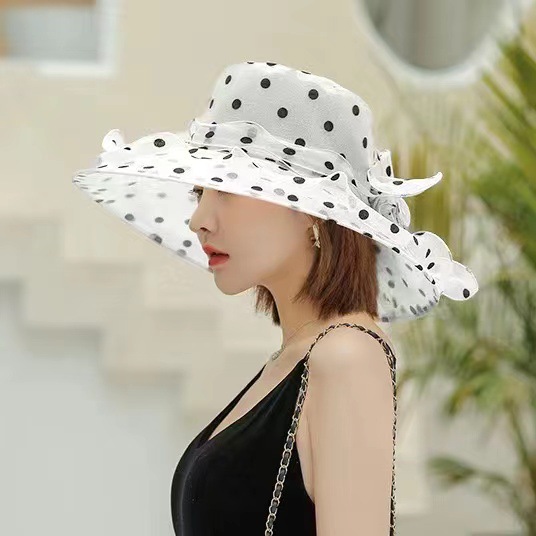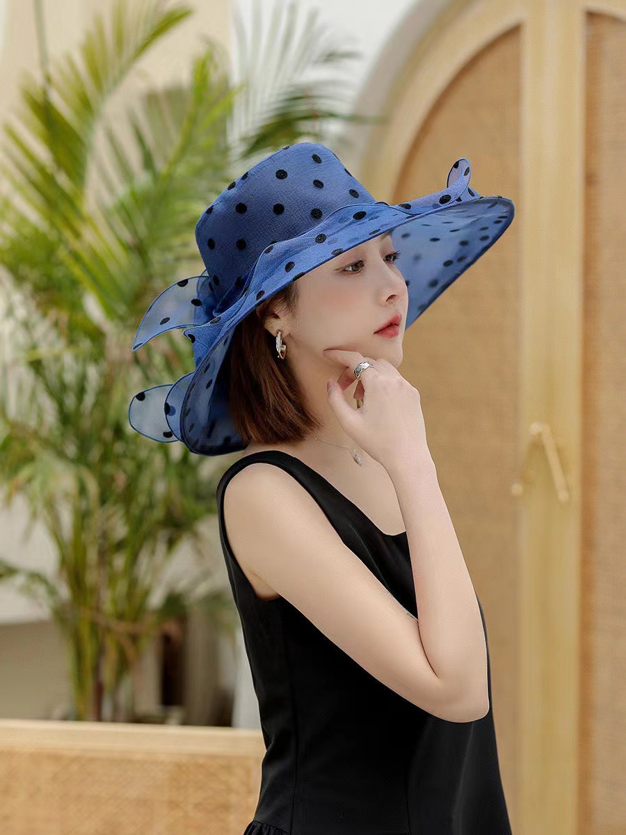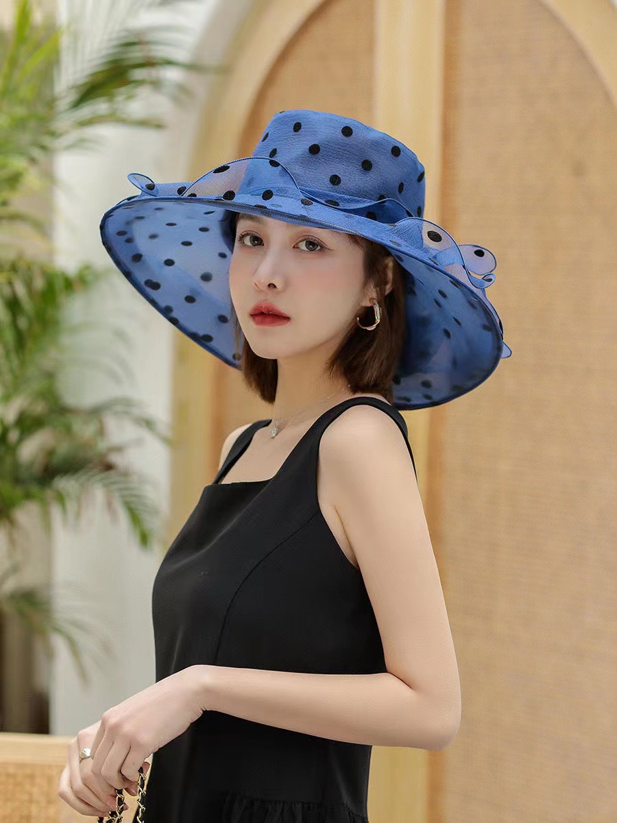 여성용 태양 모자 그물 거즈 모자 오간자 여름 태양 모자 복고풍 야외 거즈 모자 비치 물방울 무늬 유럽과 미국스토어 가기