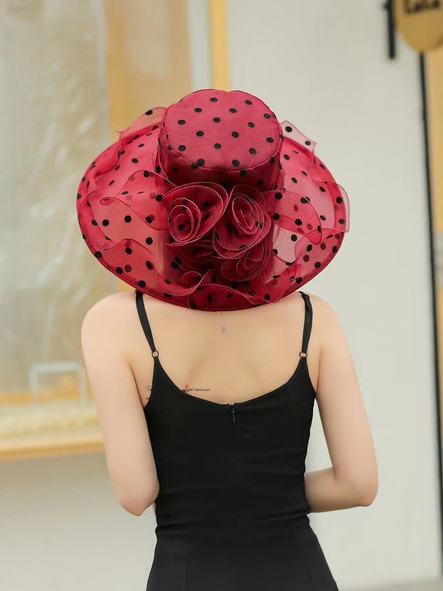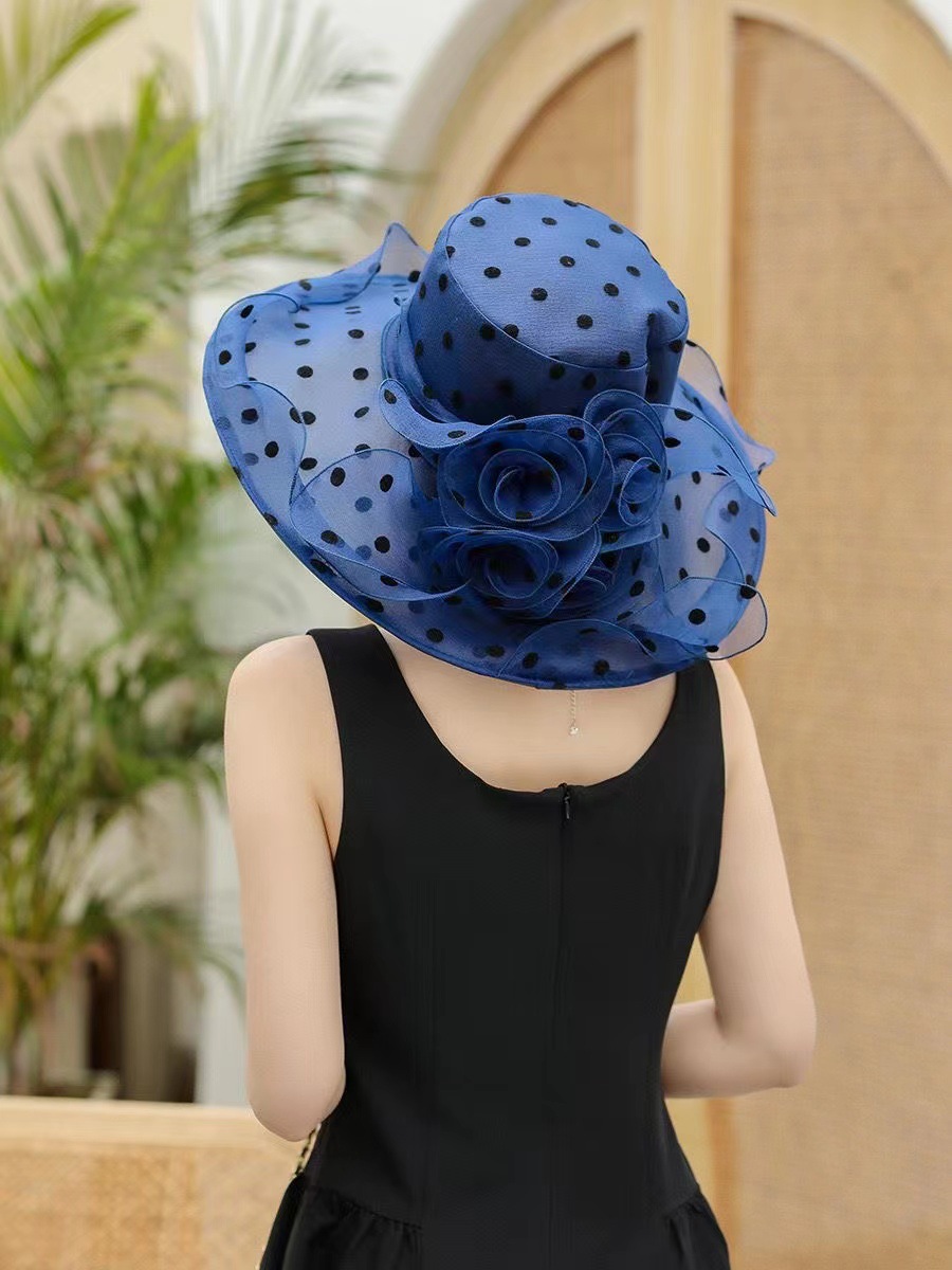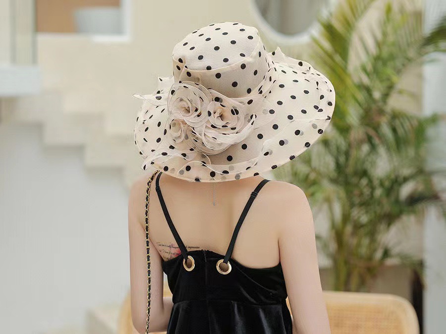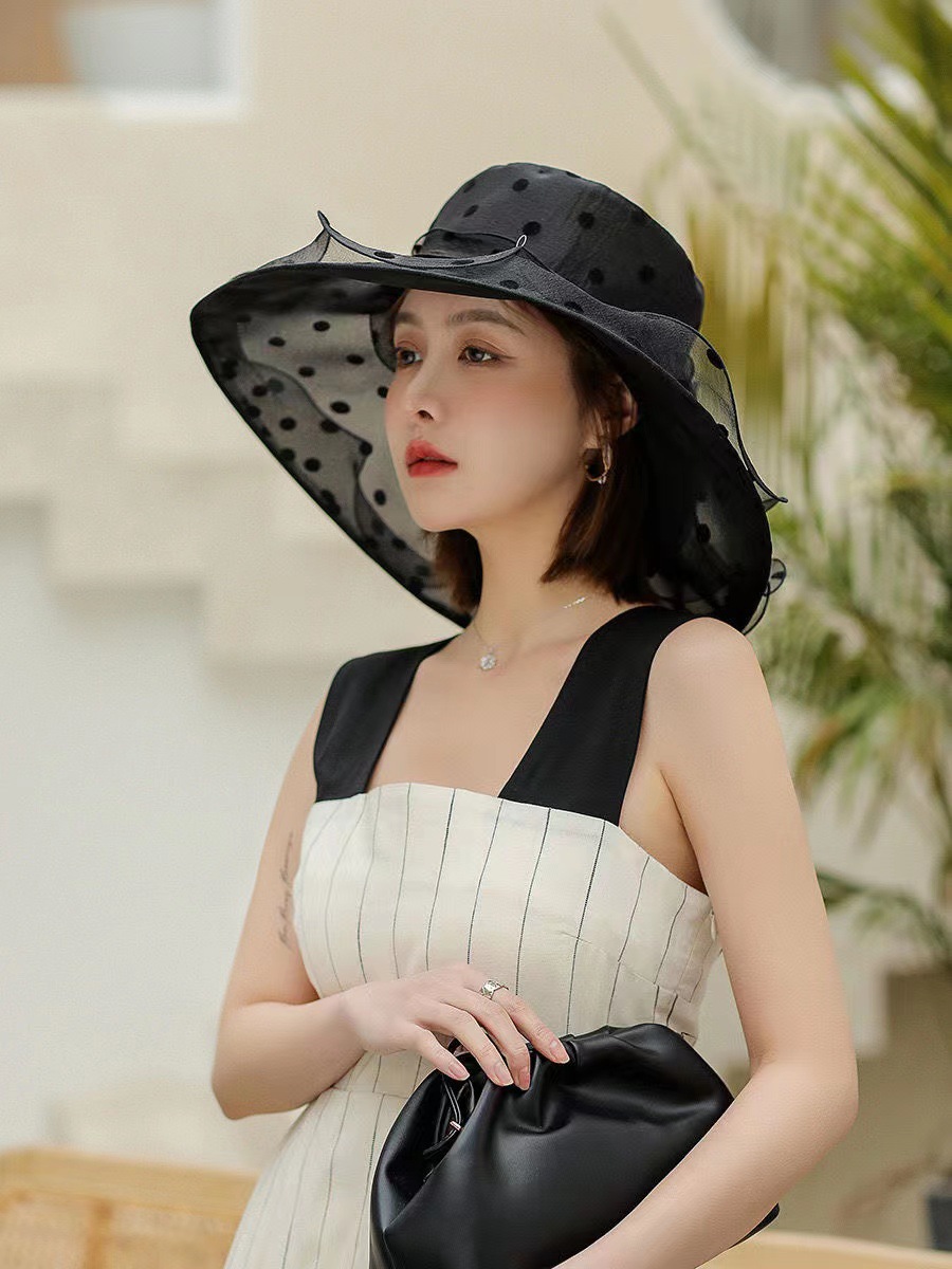 여성용 태양 모자 그물 거즈 모자 오간자 여름 태양 모자 복고풍 야외 거즈 모자 비치 물방울 무늬 유럽과 미국스토어 가기