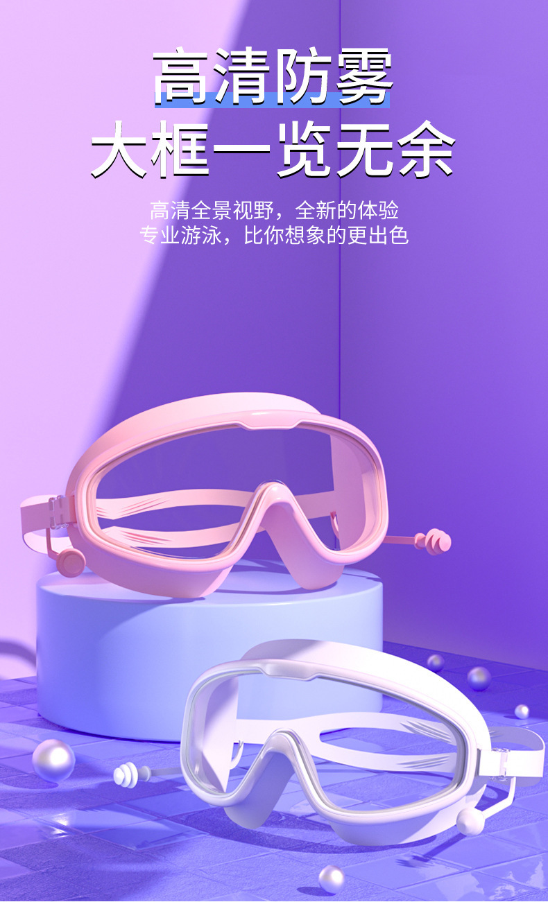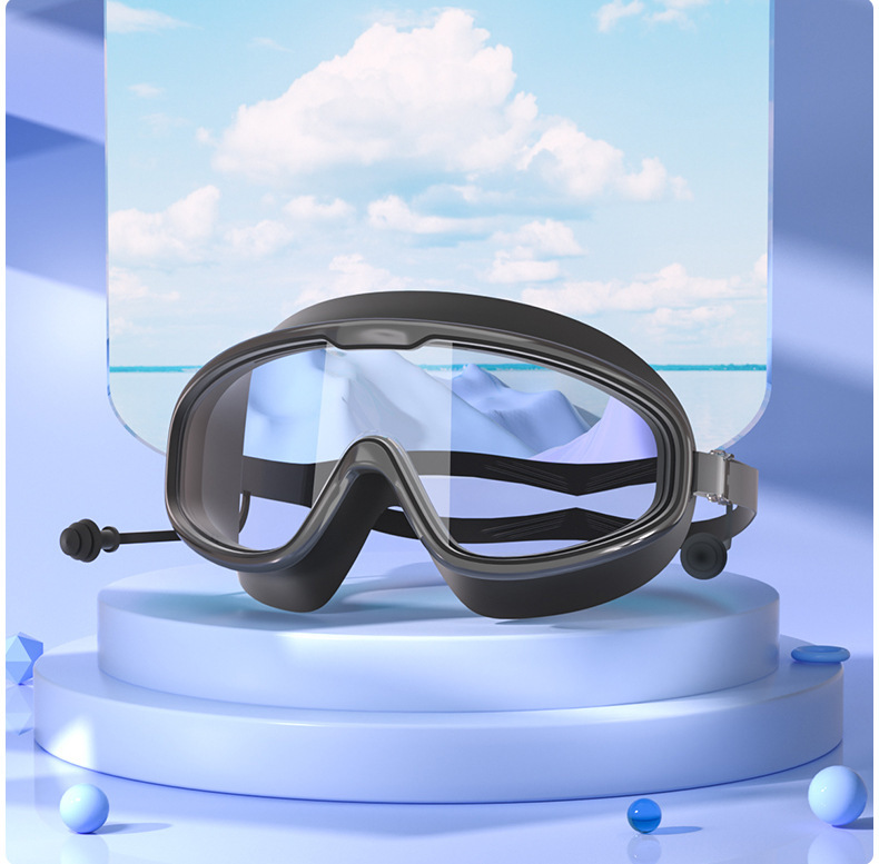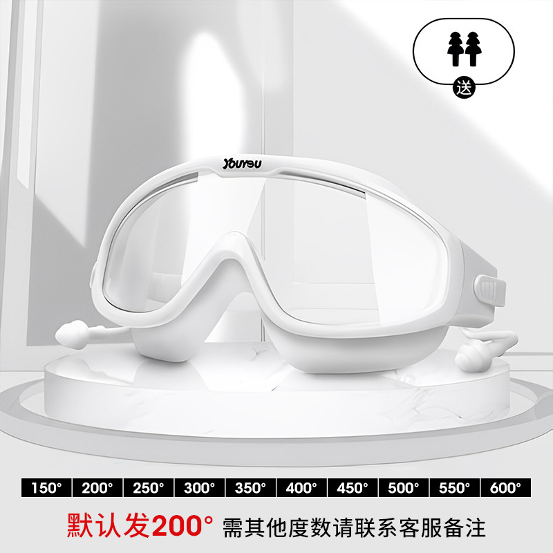 수영 고글 새로운 성인용 2025 패셔너블한 일체형 귀마개가 있는 눈 보호대, 대형 프레임, 방수 및 안개 방지, 남성과 여성을 위한 동일한 스타일의 근시 고글스토어 가기