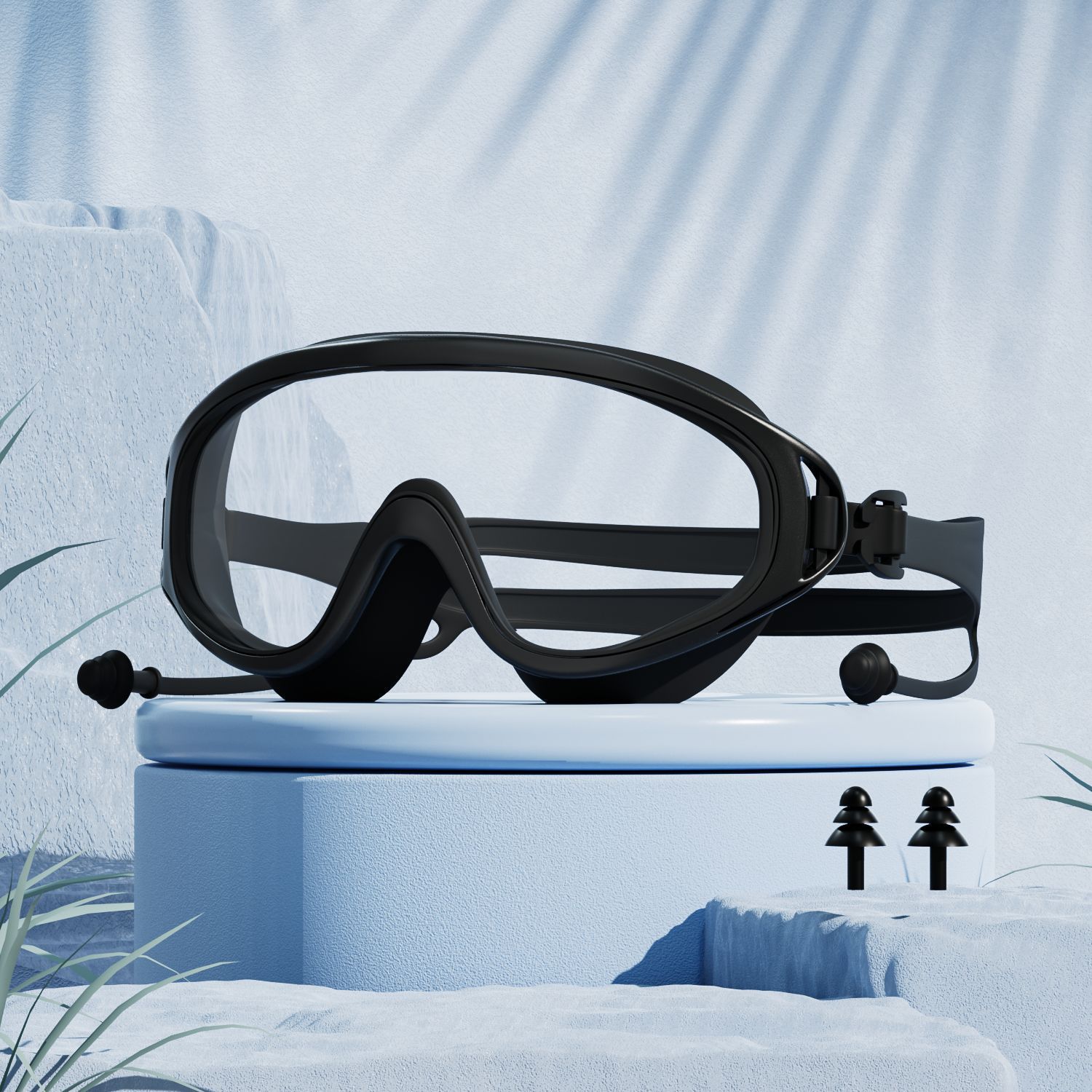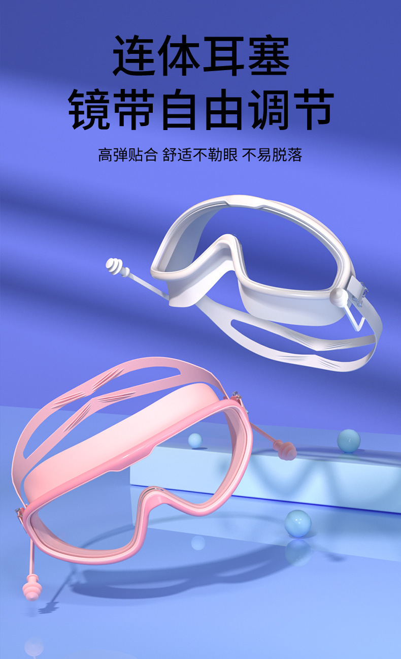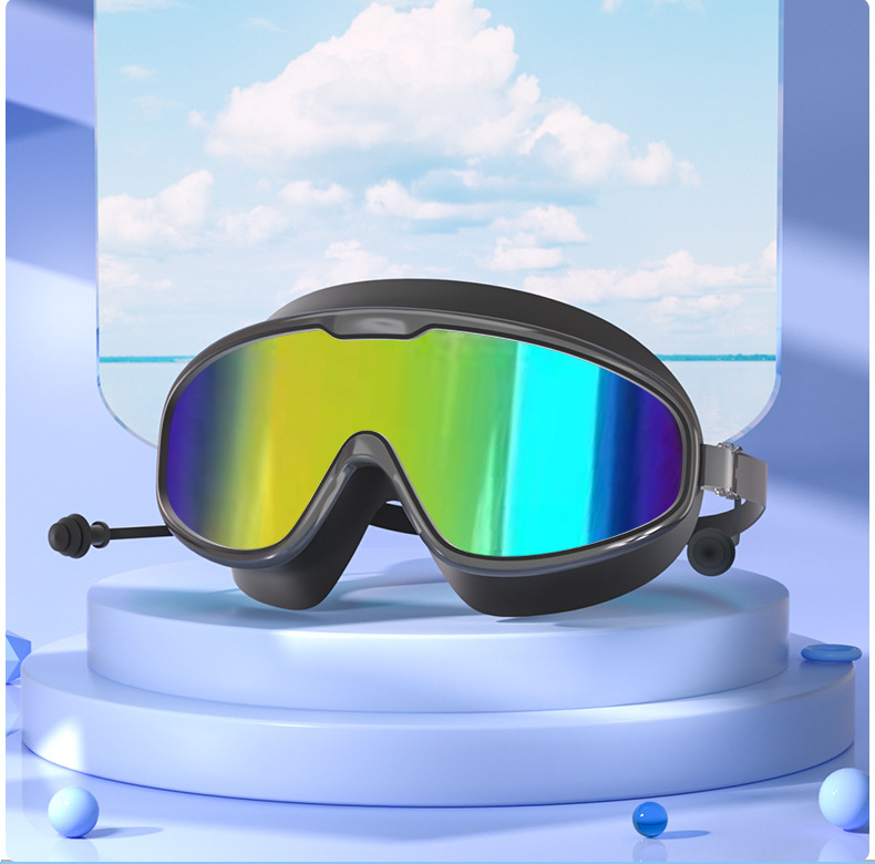 수영 고글 새로운 성인용 2025 패셔너블한 일체형 귀마개가 있는 눈 보호대, 대형 프레임, 방수 및 안개 방지, 남성과 여성을 위한 동일한 스타일의 근시 고글