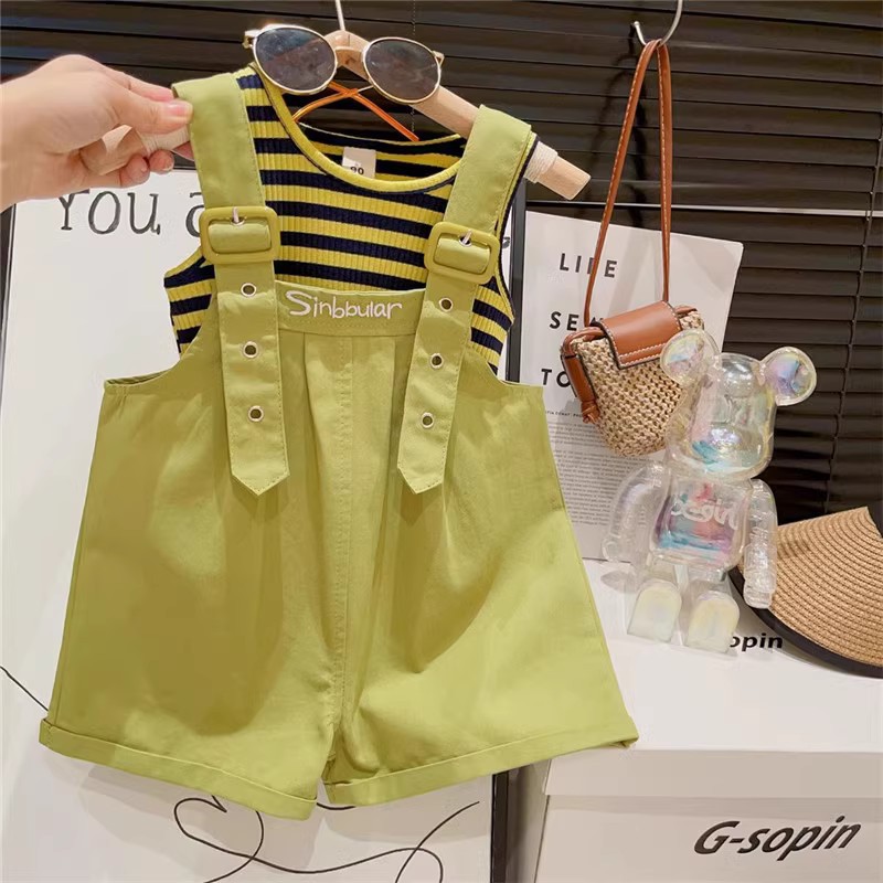 여아 스트랩 세트 여름 2023 여름 아동복 아동 세련된 반팔 어린 소녀 티셔츠 바지 투피스 세트스토어 가기