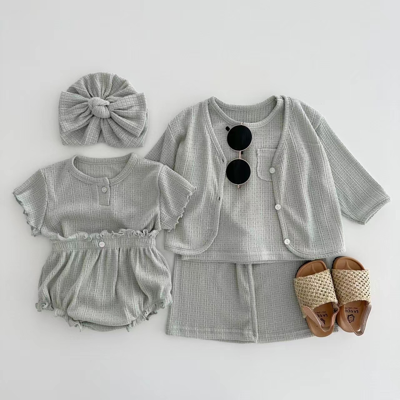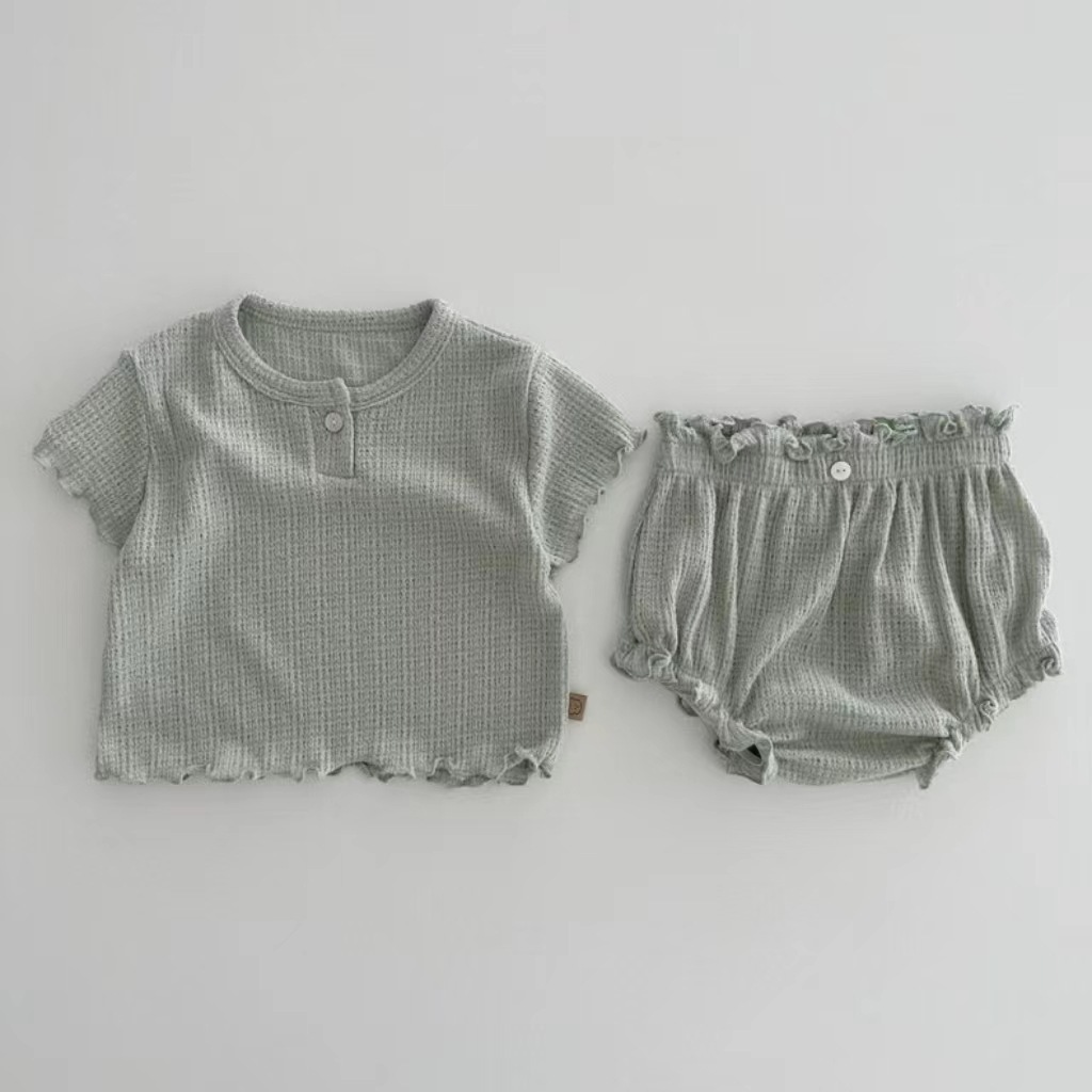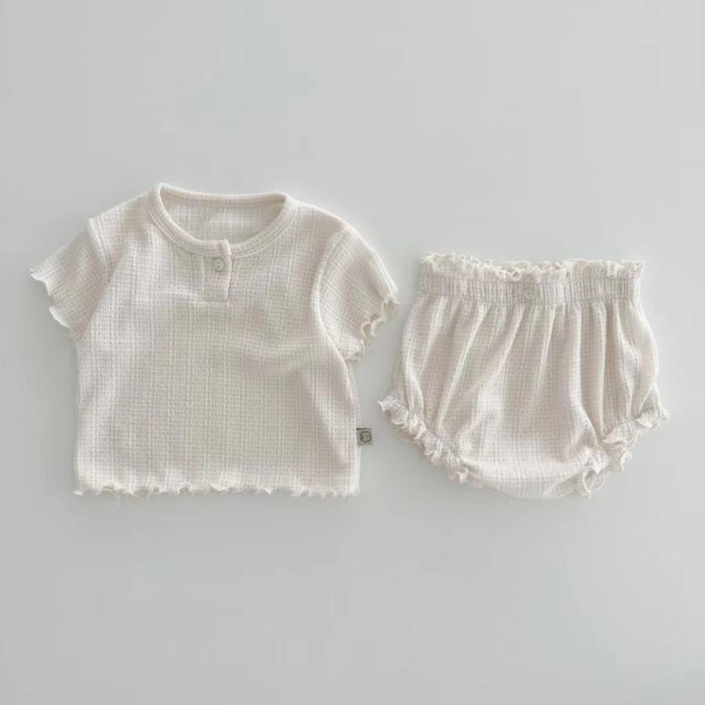 한국인의 새로운 단색 레이스 반바지 + 단색 재킷 반소매 부드럽고 편안한 홈 아웃 패션 심플