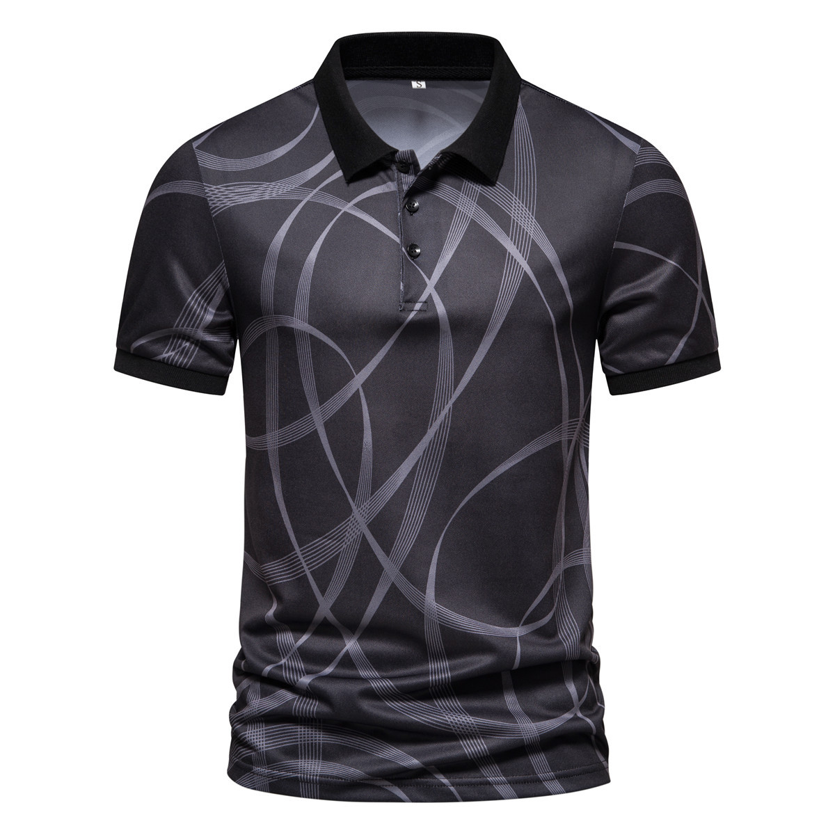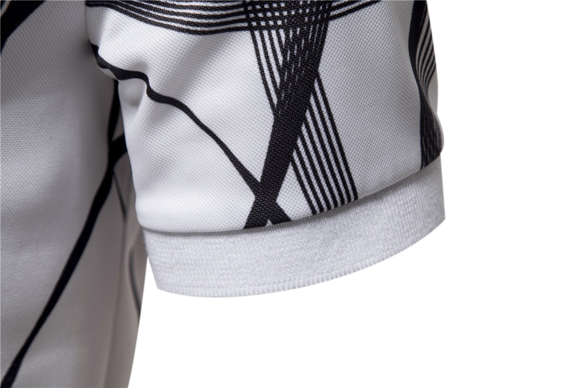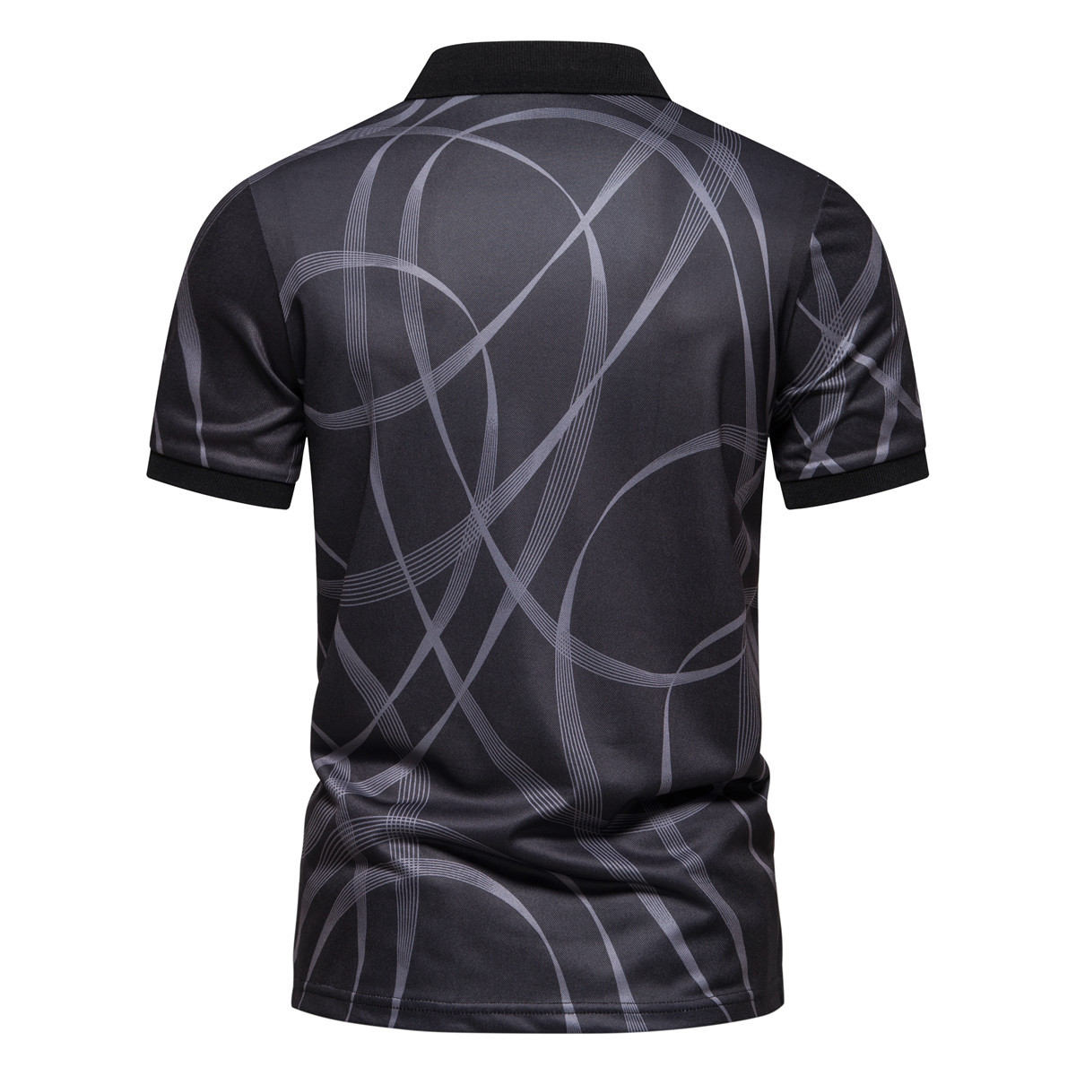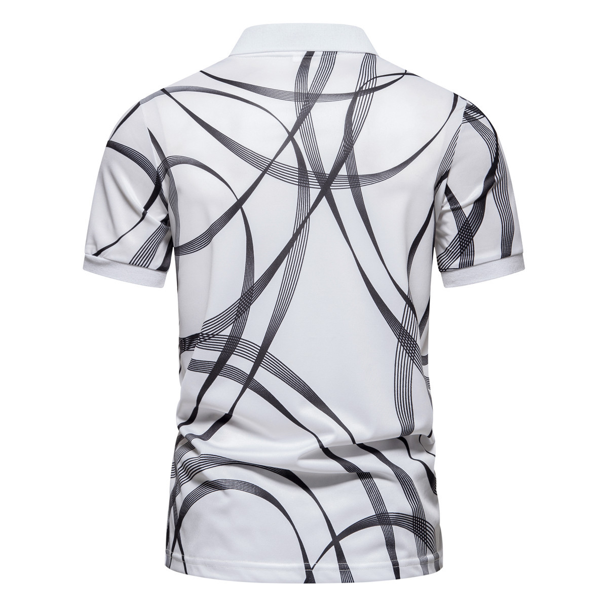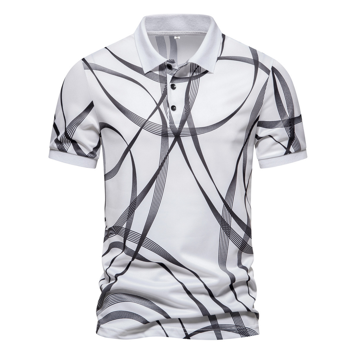 유럽과 미국 여름 새로운 아마존 캐주얼 남성용 반팔 폴로 셔츠 스트라이프 프린트 남성용 라펠 반팔 티셔츠