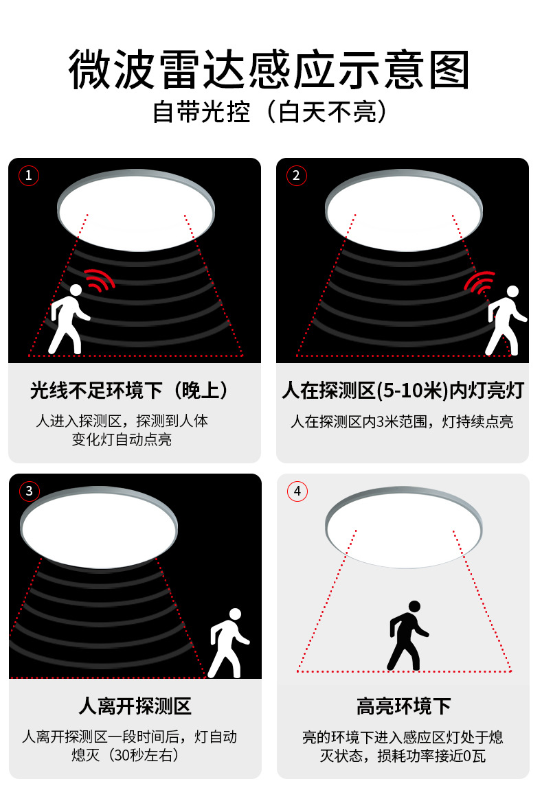 레스토랑 라운드 방습 모기 방지 천정 램프 계단 통로 레이더 인체 유도 음향 및 조명 제어 삼방램프