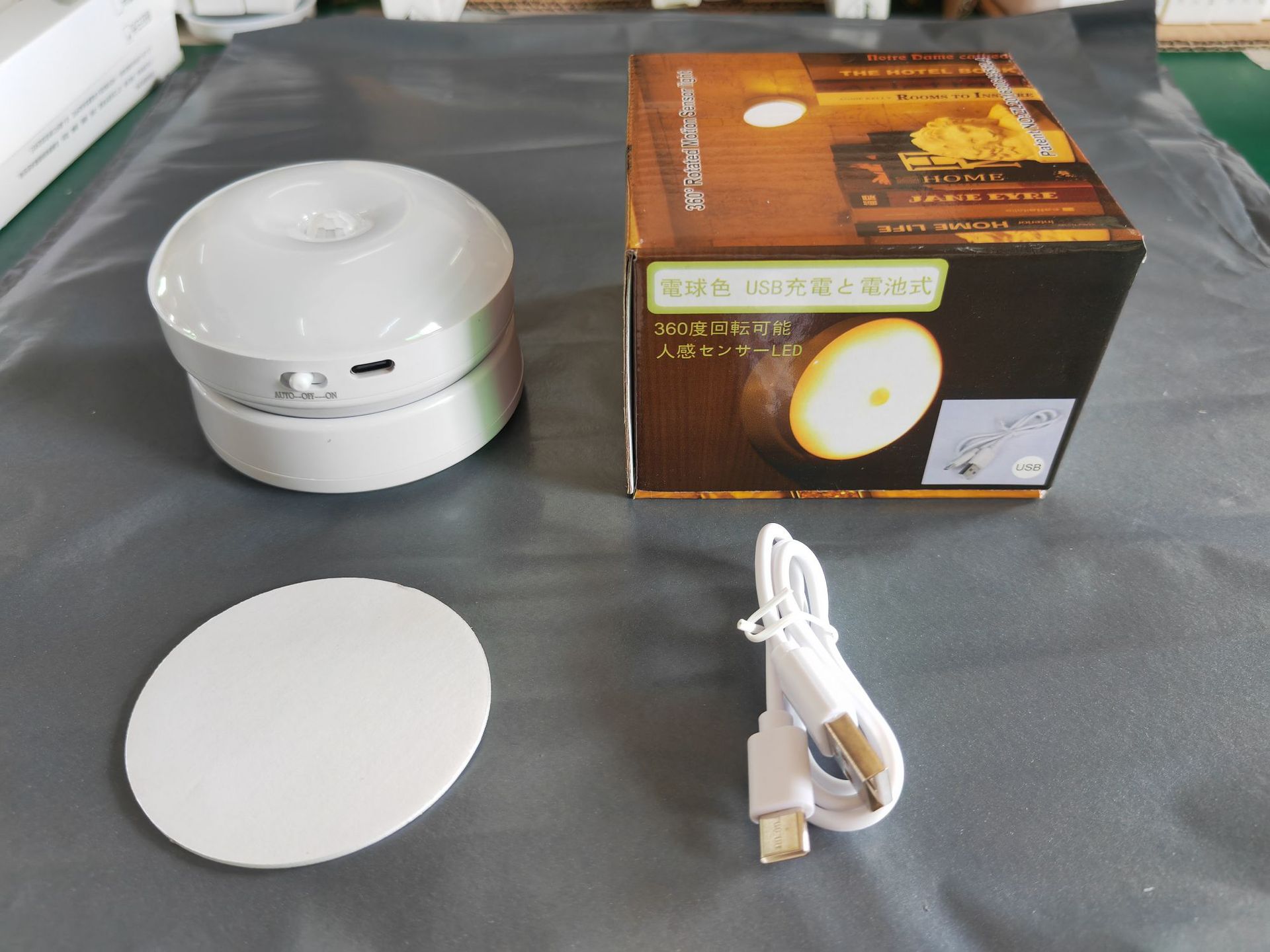 充电电池两用款可用拨动开关控制关闭电源/常亮模式/夜间感应模式 AUTO-OFF-ON 参考以下实拍图片,华为typec充电口。灯头位置还能安装拆卸三节7号电池,赠送背胶,灯头底座带磁吸,磁吸安装,另外赠送20公分配机线