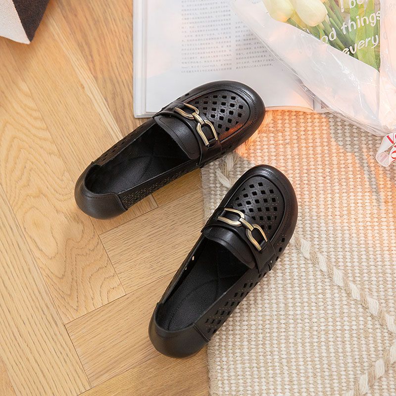 탑 레이어 소가죽 여름 슈퍼 소프트 바닥 얕은 입 에스닉 스타일 출산 신발 미끄럼 방지 완두콩 신발 플랫 여성 싱글 레이어 신발 어머니 신발