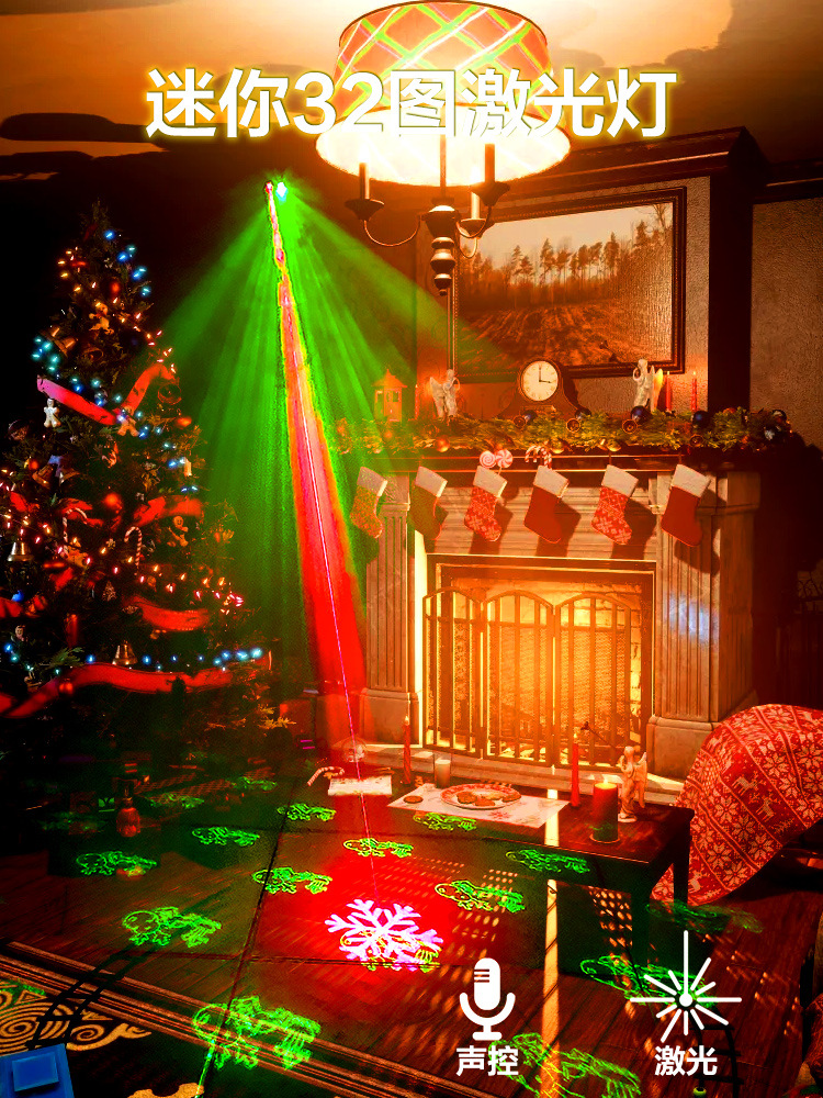 크리스마스 레이저 라이트 크로스 보더 유럽과 미국 실내 할로윈 분위기 프로젝션 분위기 조명 파티 레이아웃 라이트 블리자드스토어 가기