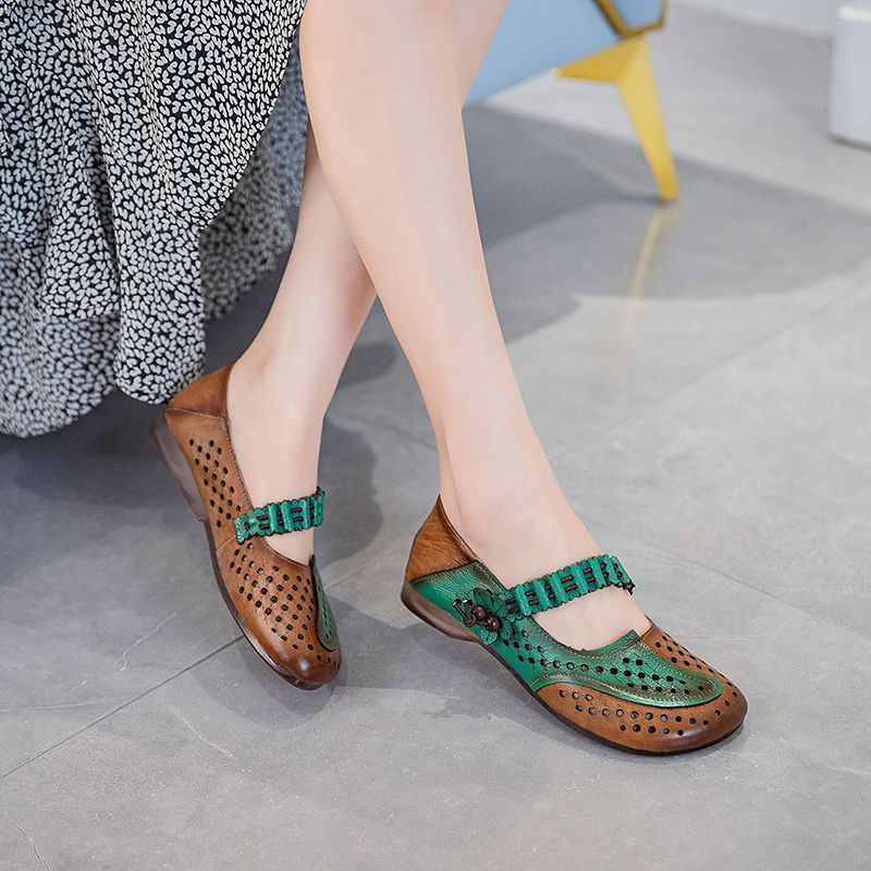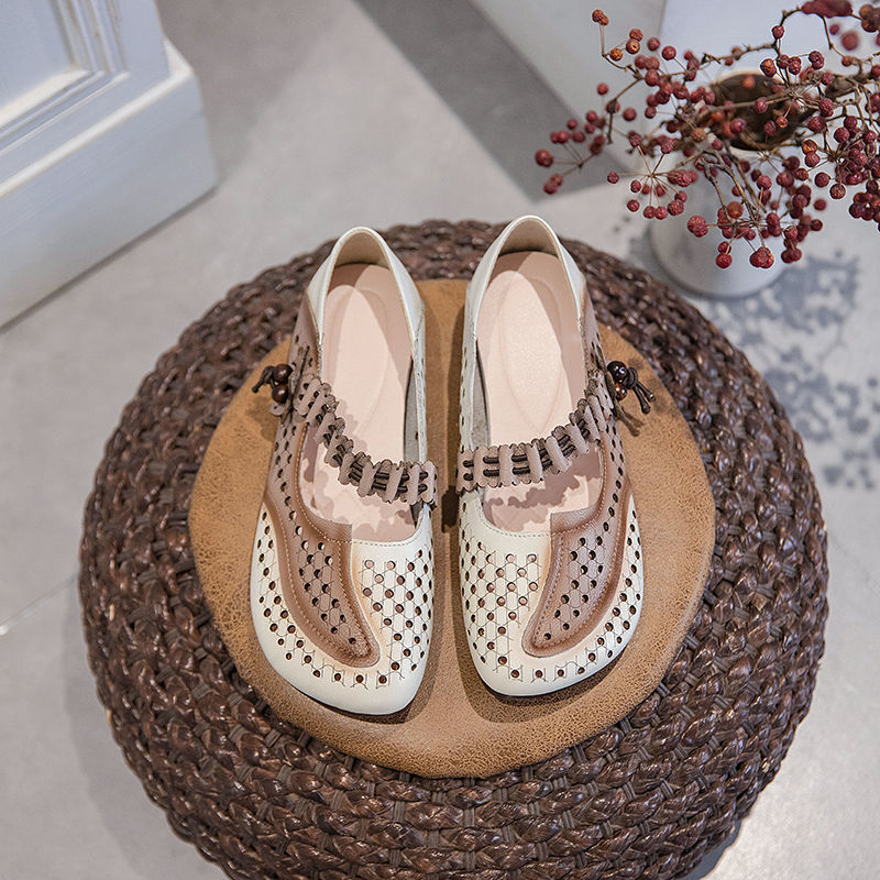 첫 번째 레이어 소가죽 여성 신발 봄과 가을 2022 엄마를위한 플랫 슈즈 미끄럼 방지 플러스 사이즈 정품 가죽 부드러운 바닥 쇠고기 신발