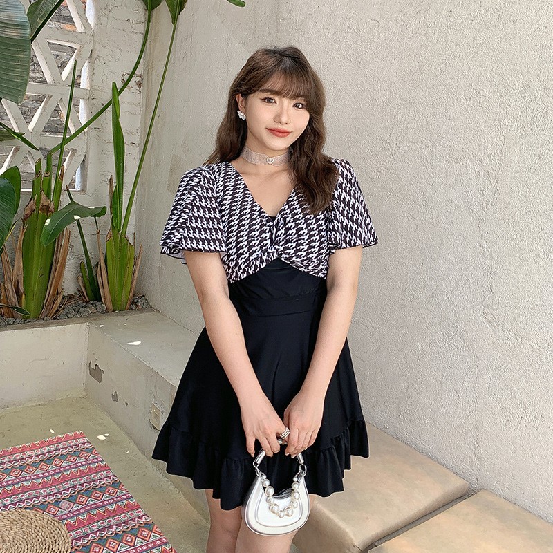 새로운 유행 원피스 수영복 여성의 보수적 인 배꼽 덮음 슬리밍 하이 웨이스트 스틸 브래킷 수집 해변 온천 휴가 수영복스토어 가기