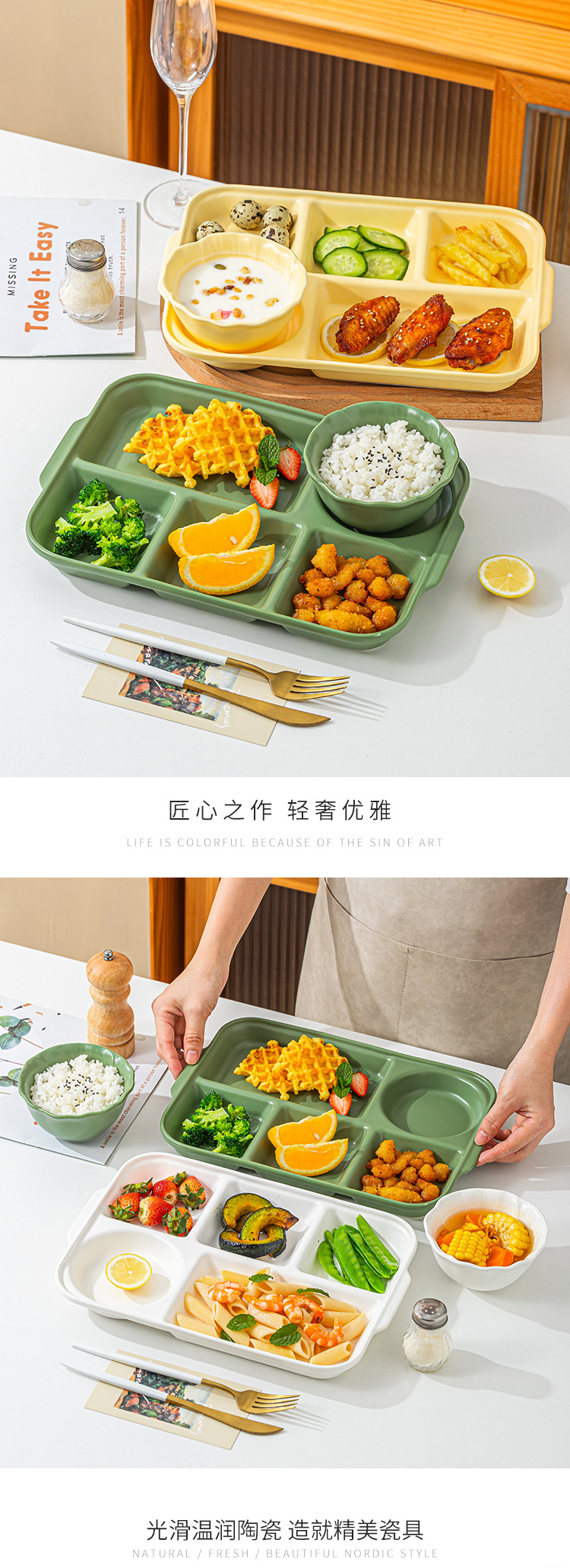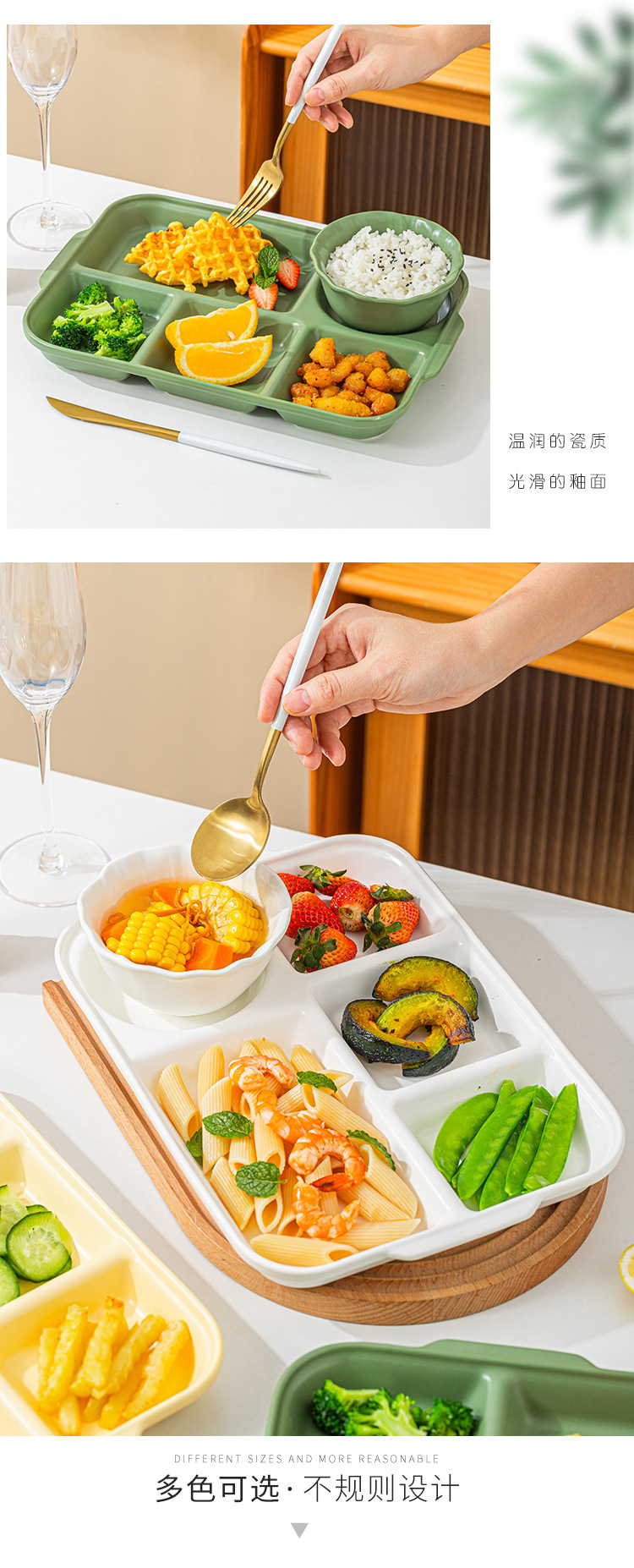 크림 스타일 1 인용 다이어트 플레이트 성인 지방 감소 문 식기 아침 식사 접시 어린이 직사각형 패스트 푸드 플레이트스토어 가기