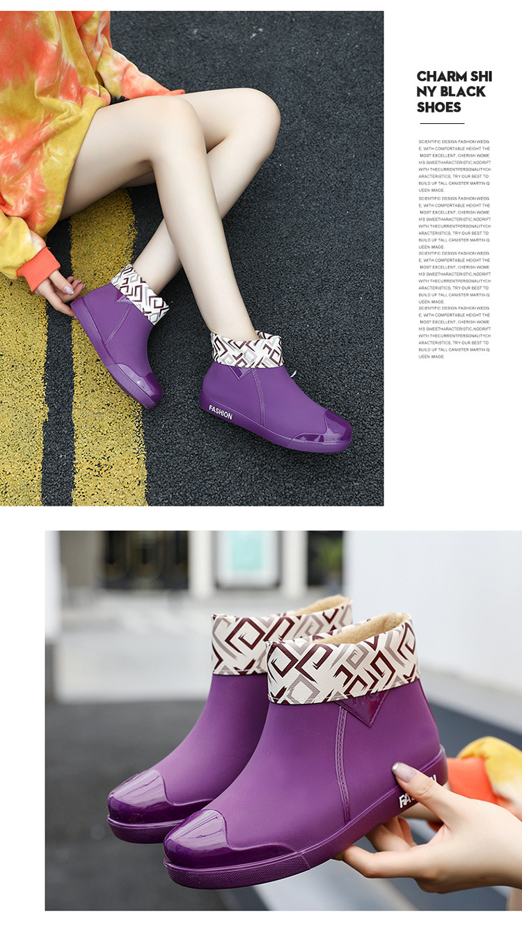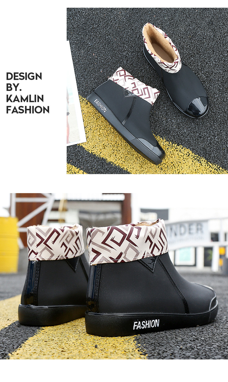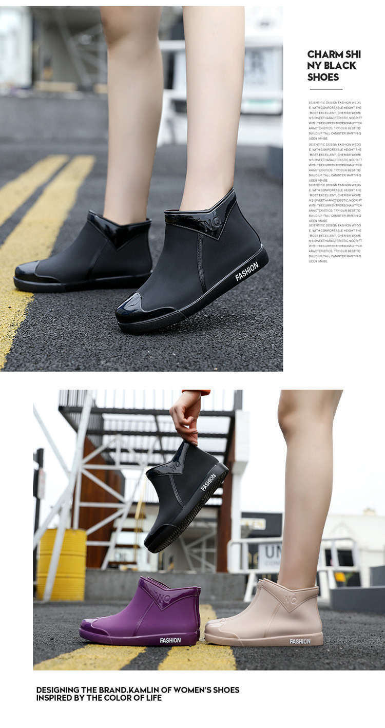 패션 장화 여성용 트렌디한 짧은 튜브 워터 슈즈 사계절 겉옷 작업 신발 한국식 따뜻한 방수 미끄럼 방지 내마모성 장화
