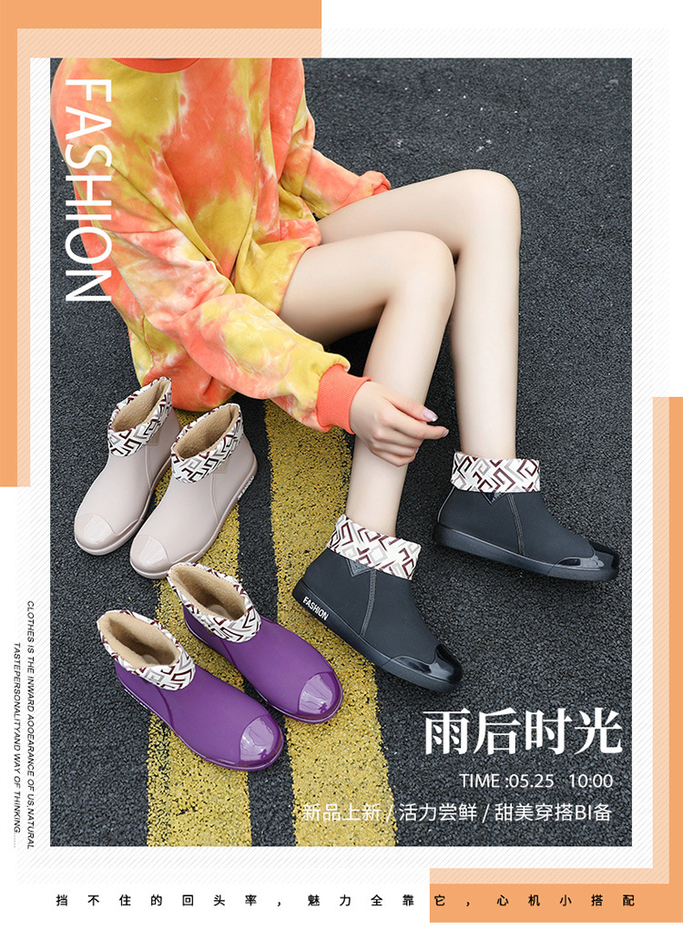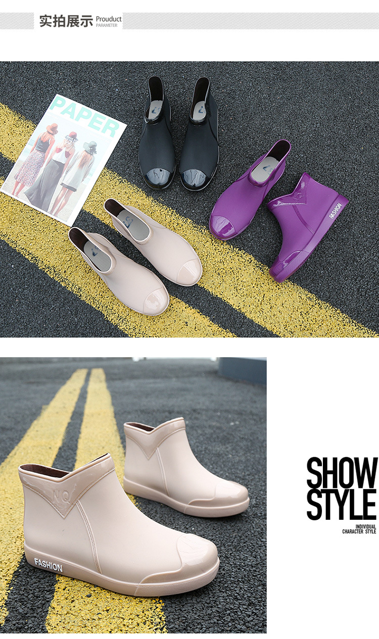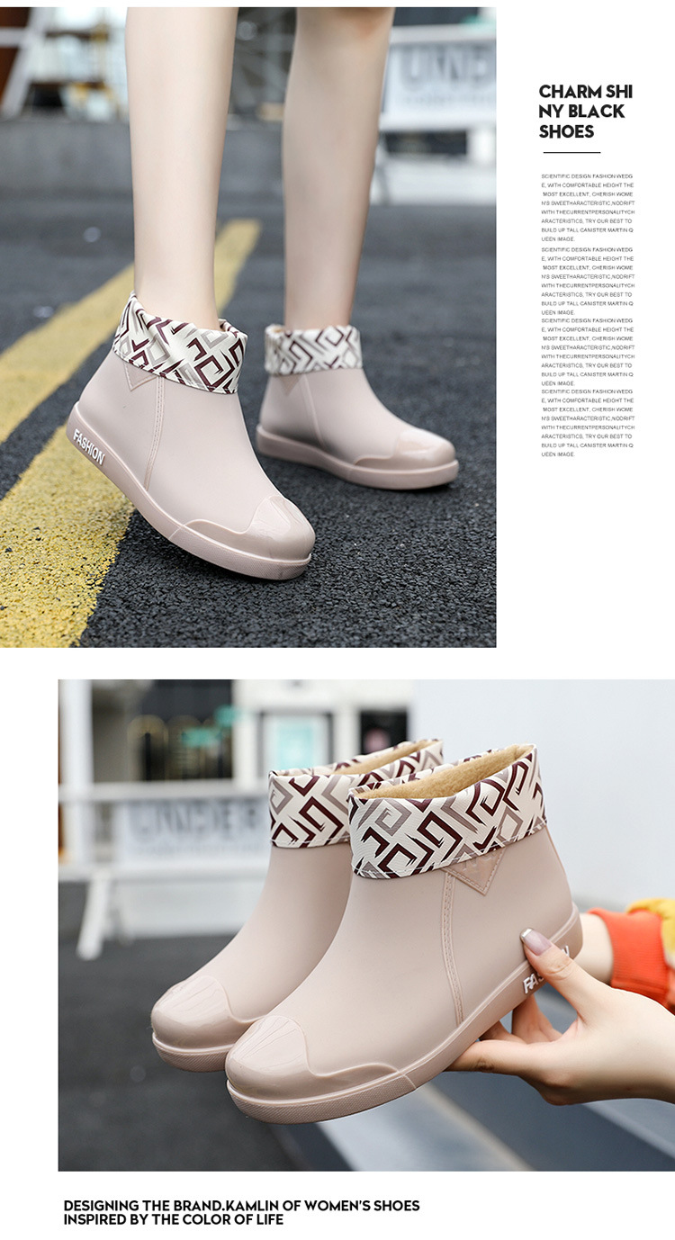 패션 장화 여성용 트렌디한 짧은 튜브 워터 슈즈 사계절 겉옷 작업 신발 한국식 따뜻한 방수 미끄럼 방지 내마모성 장화스토어 가기