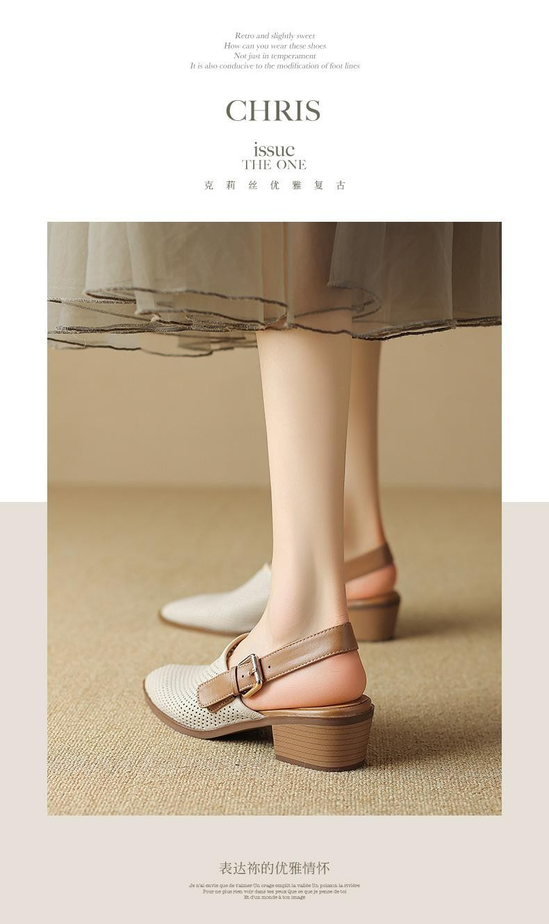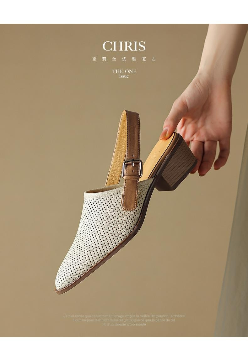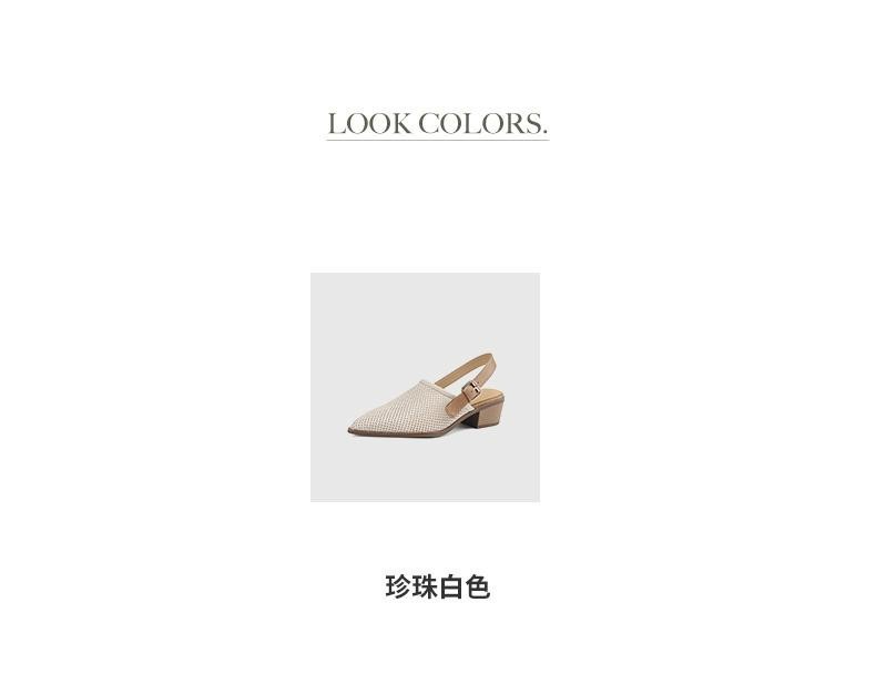 2023 여름 청키 뒤꿈치 샌들 여성용 통기성 Flywite 닫힌 발가락 샤넬 스타일 원 스트랩 청키 힐 뾰족한 미드 힐 메쉬 여성용 신발스토어 가기