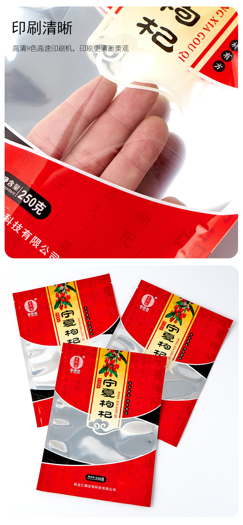 맞춤형 Ningxia wolfberry 가방 250 g 너트 포장 가방 자체 밀봉 가방 음식 가방 봉인 가방 컬러 인쇄스토어 가기