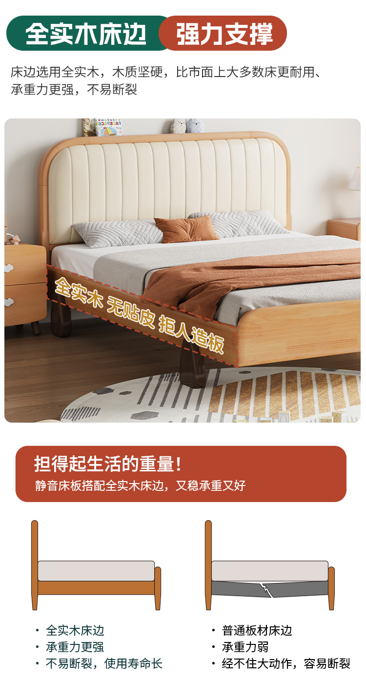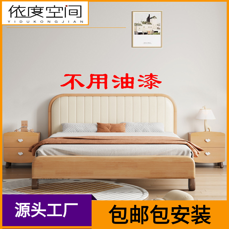 모든 단단한 나무 너도밤 나무 어린이 침대 1.2 미터 나무 왁스 오일 소년과 소녀 싱글 소프트 백 침대 작은 아파트 1.5 공주 침대