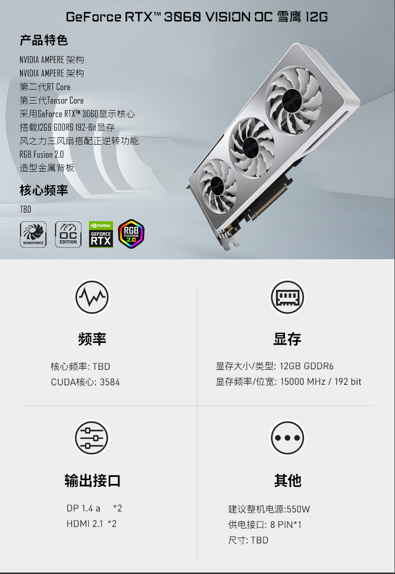 Jijia RTX3060 GDDR6 Magic Eagle/Snow Eagle/Wind Magic 12G 데스크톱 게임 그래픽 카드에 적용 가능
