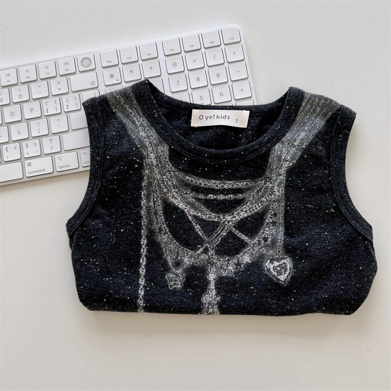 일본식 유행 어린이 중세 고대 아동복 소년과 소녀 여름 조끼 2023 새로운 패션 개인화 된 어린이 민소매 탑 유행스토어 가기