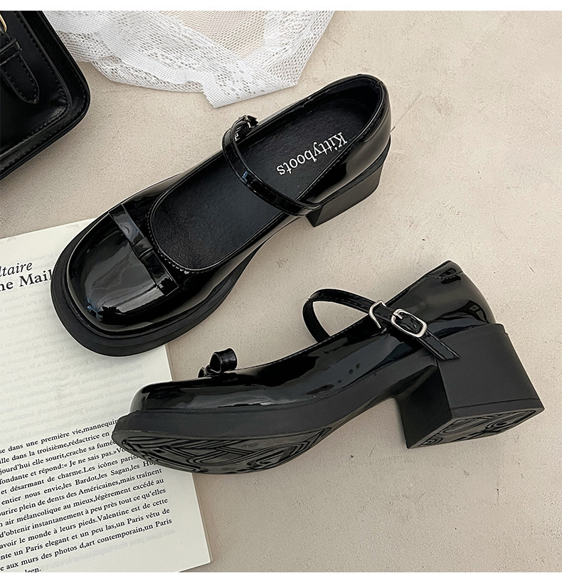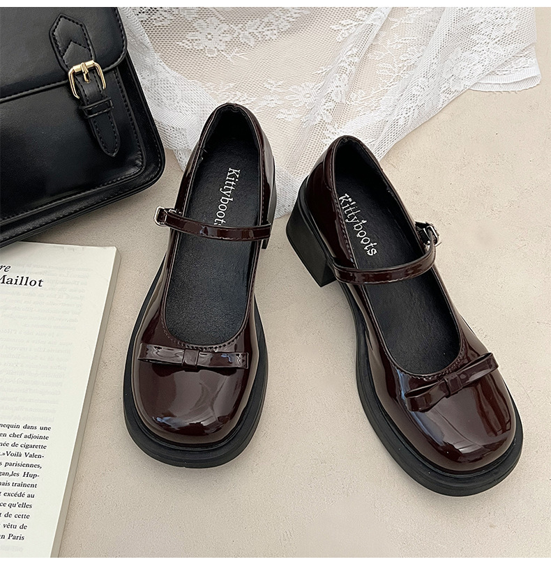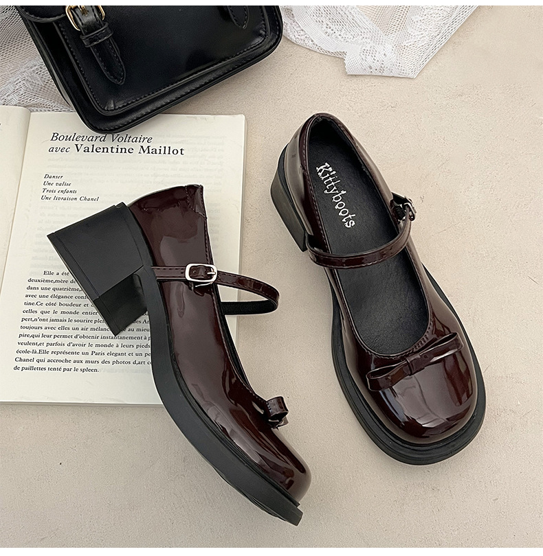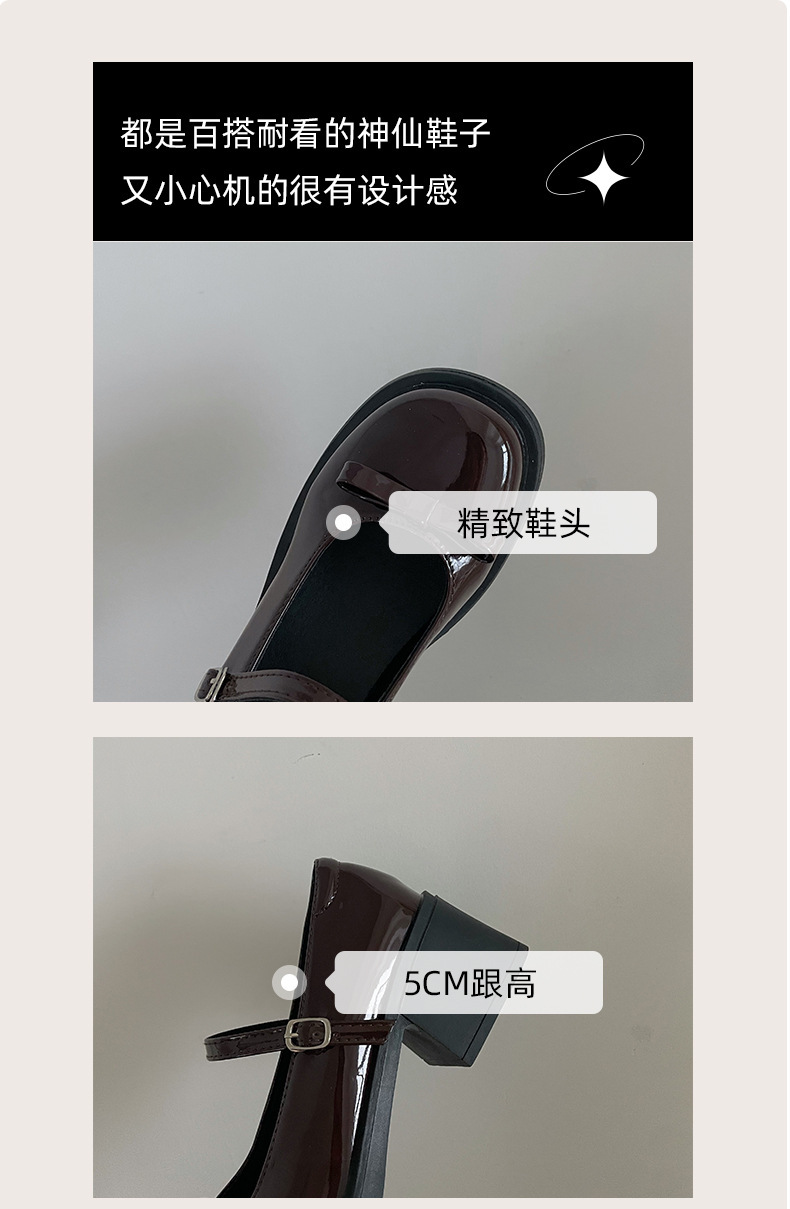프랑스 레트로 하이힐 메리 제인 신발 여성의 2024 새로운 여름 활 다크 브라운 라운드 발가락 영국 스타일 작은 가죽 신발스토어 가기