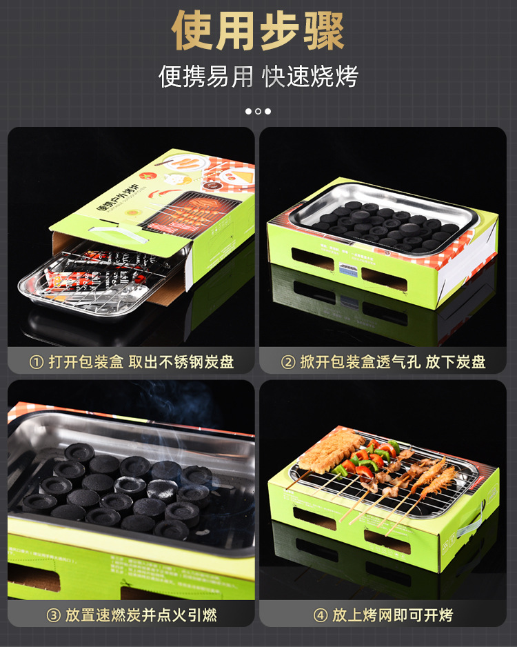 공장 직영 일회용 바베큐 야외 캠핑 휴대용 무연 바베큐 카본 바베큐 테이크 아웃 패키지스토어 가기