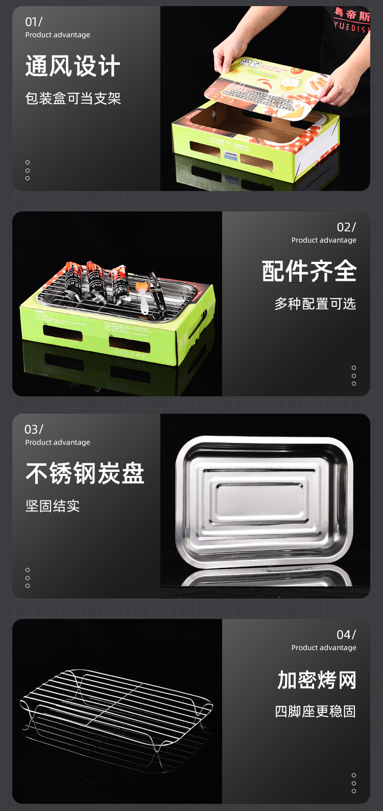공장 직영 일회용 바베큐 야외 캠핑 휴대용 무연 바베큐 카본 바베큐 테이크 아웃 패키지
