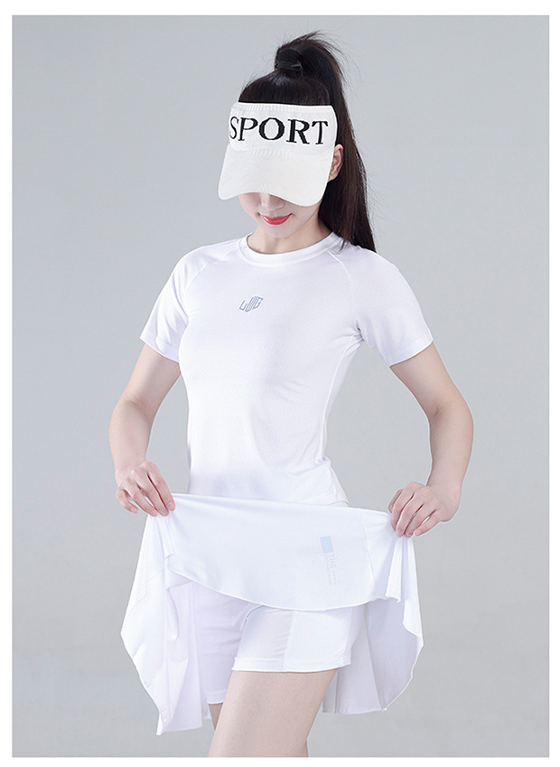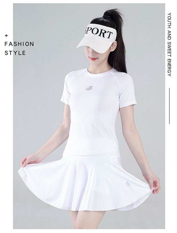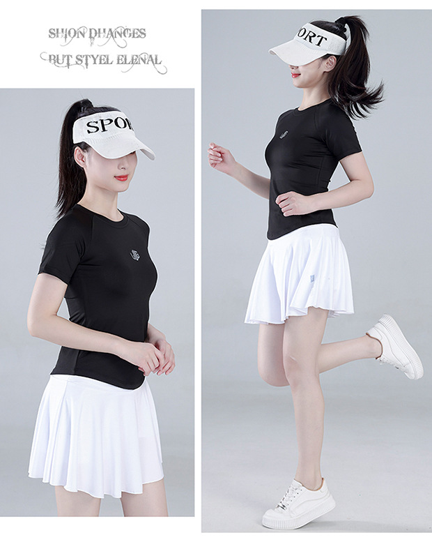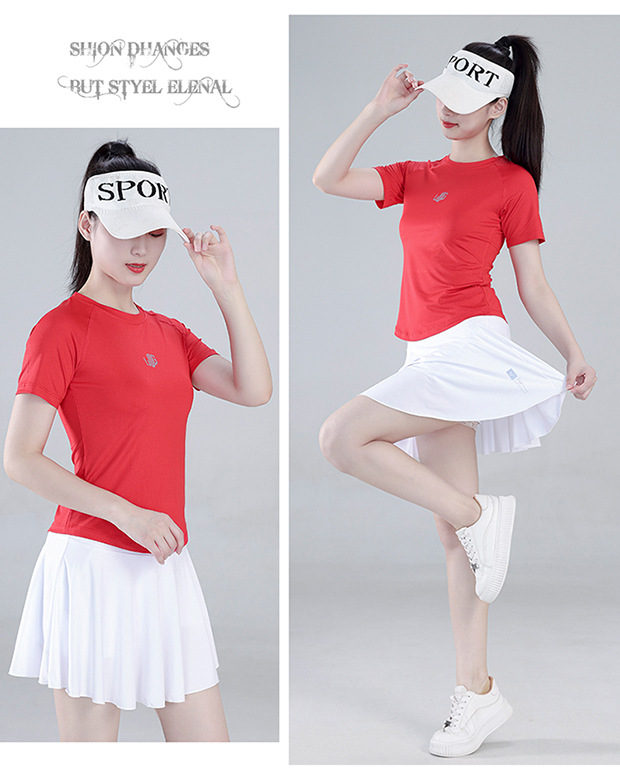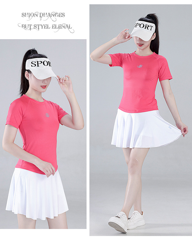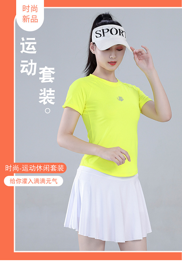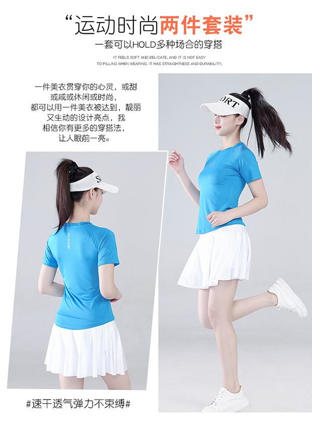 스포츠 정장 여성 러닝 피트니스 의류 장비 반팔 여름 티셔츠 탑 속건 의류 8006 의류 + 8007 스커트스토어 가기