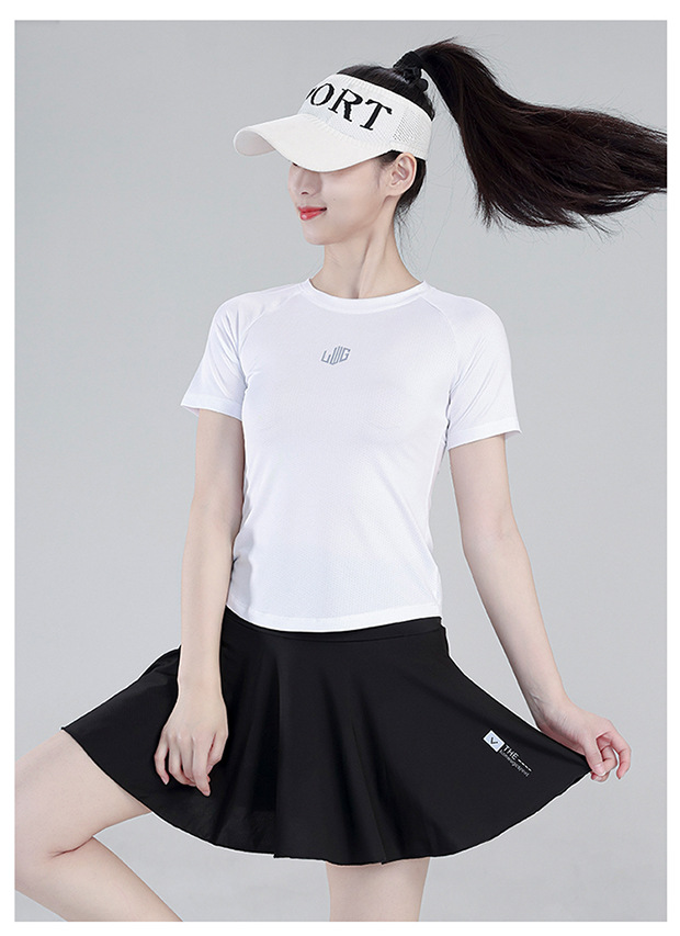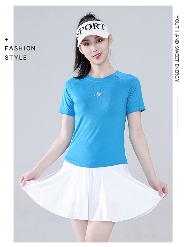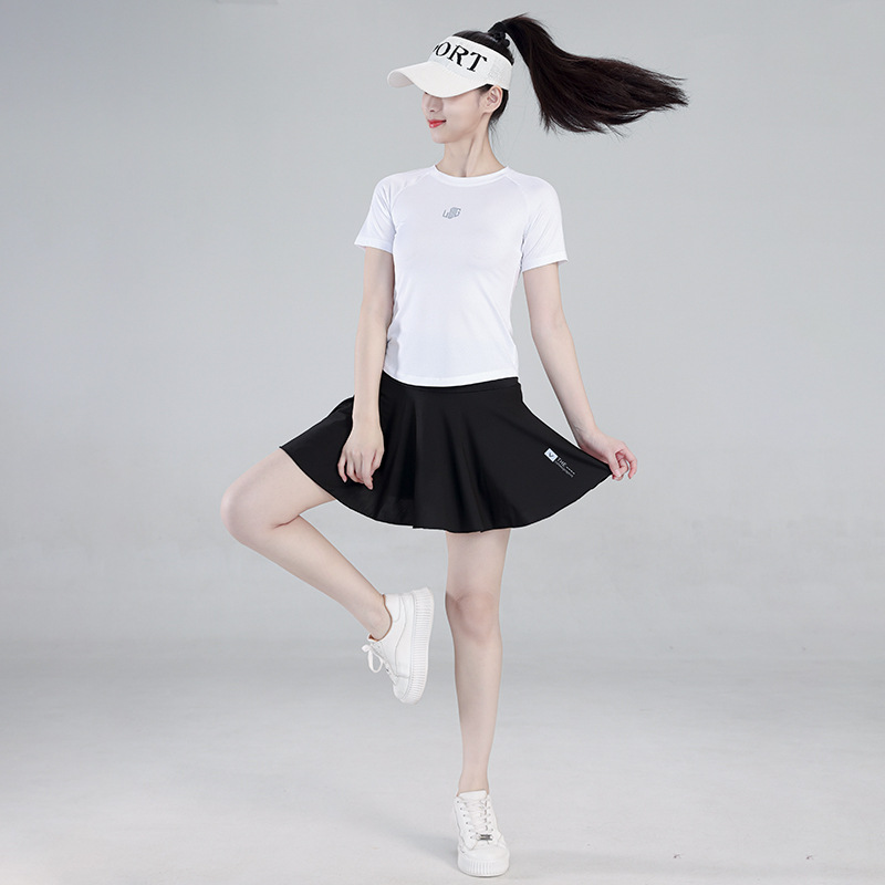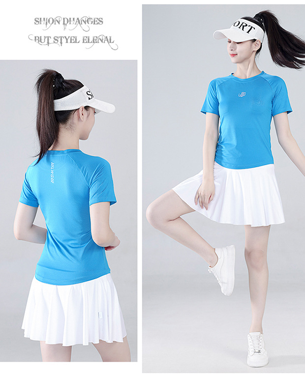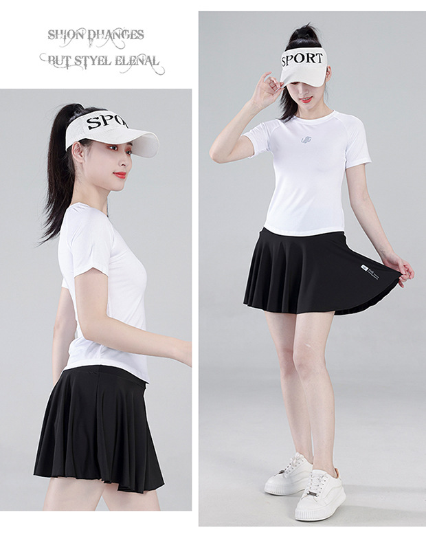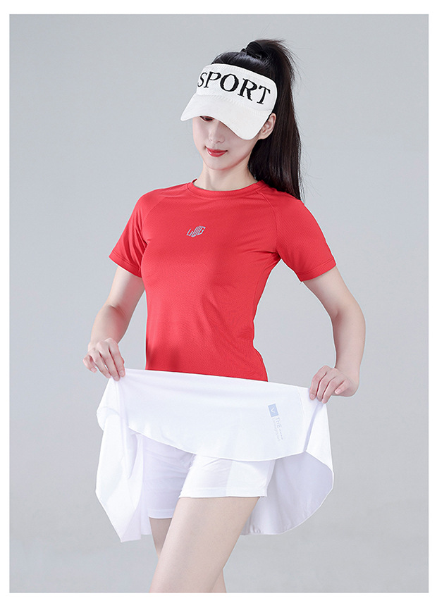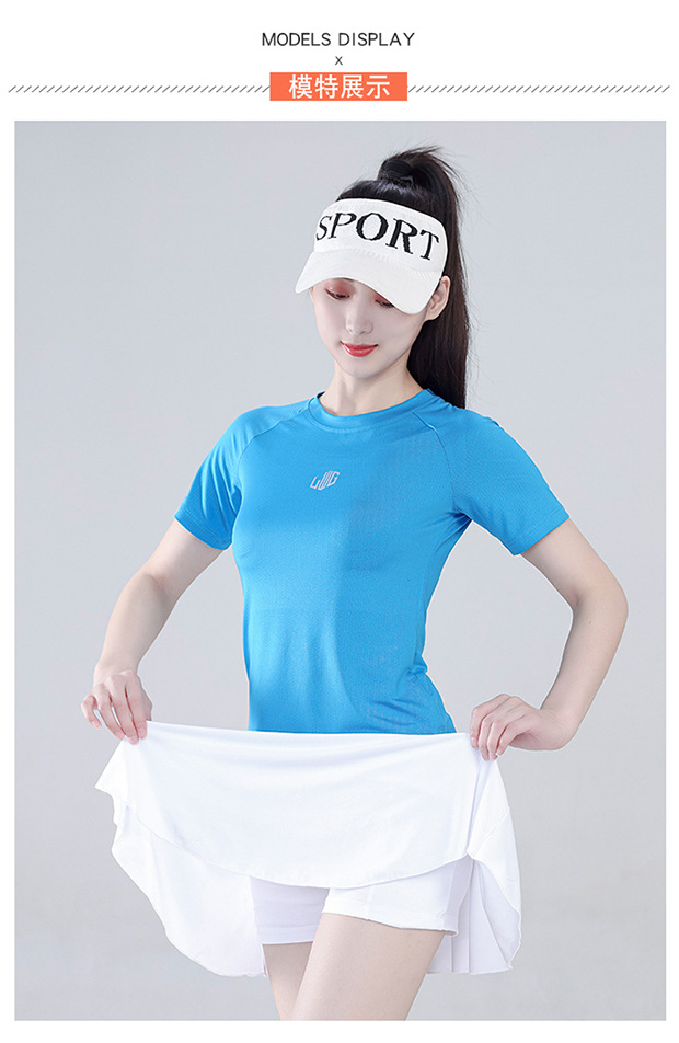 스포츠 정장 여성 러닝 피트니스 의류 장비 반팔 여름 티셔츠 탑 속건 의류 8006 의류 + 8007 스커트스토어 가기