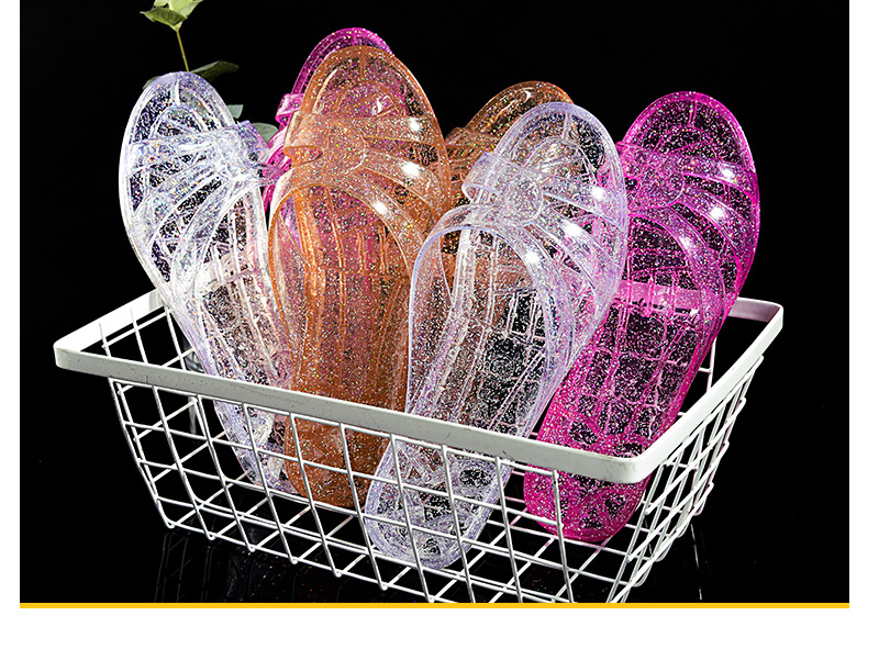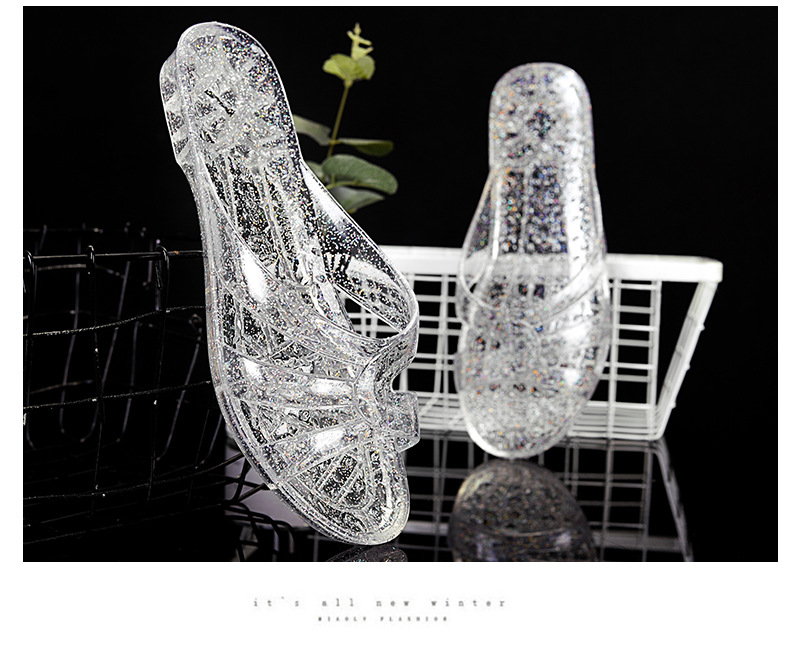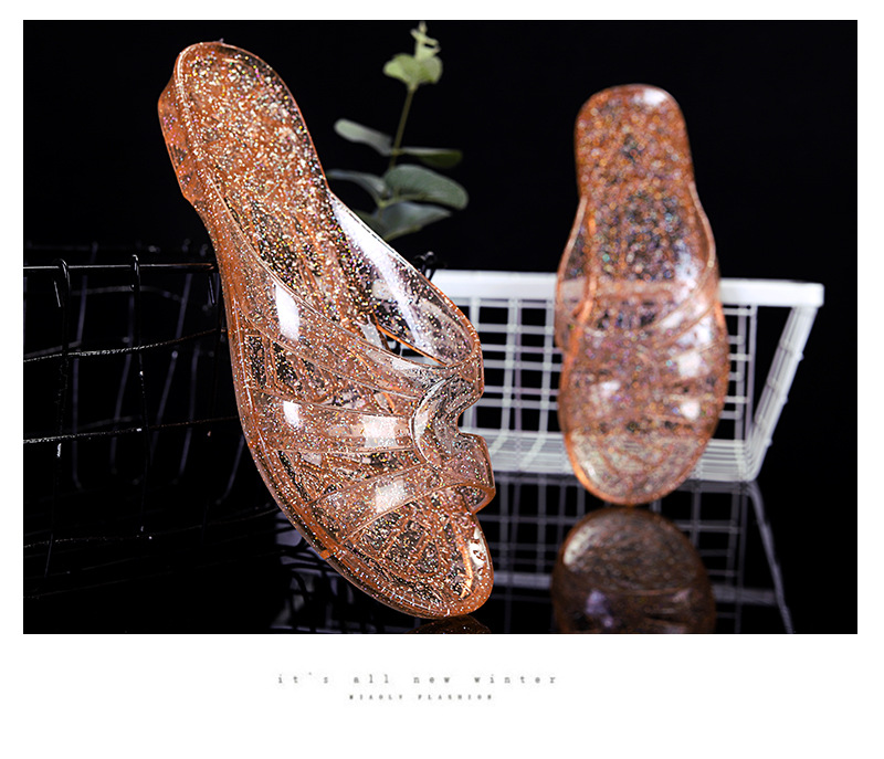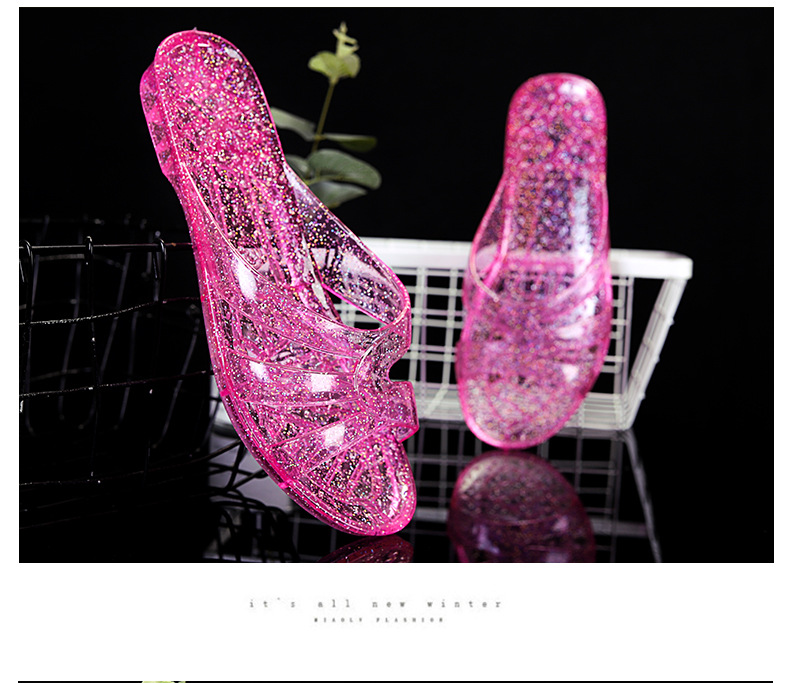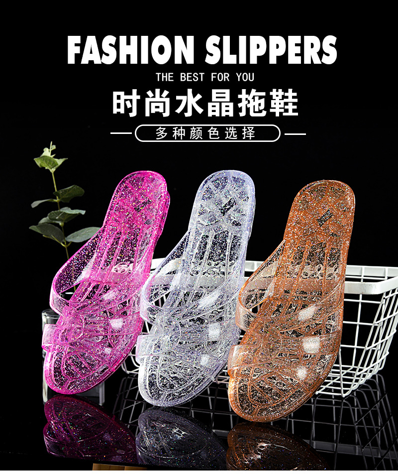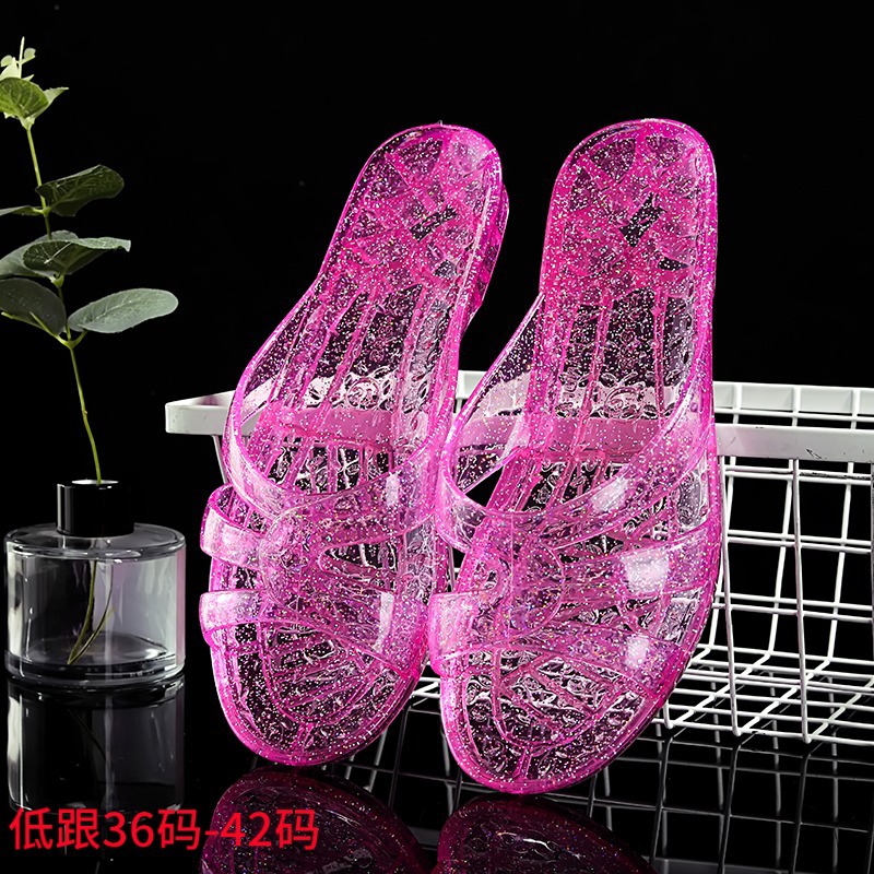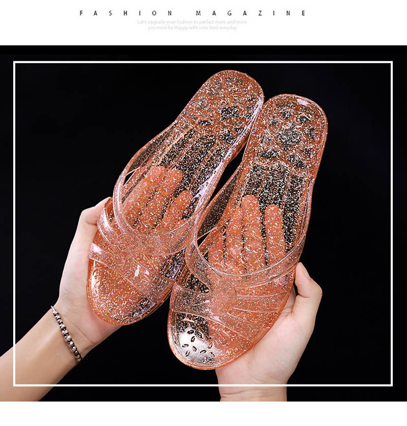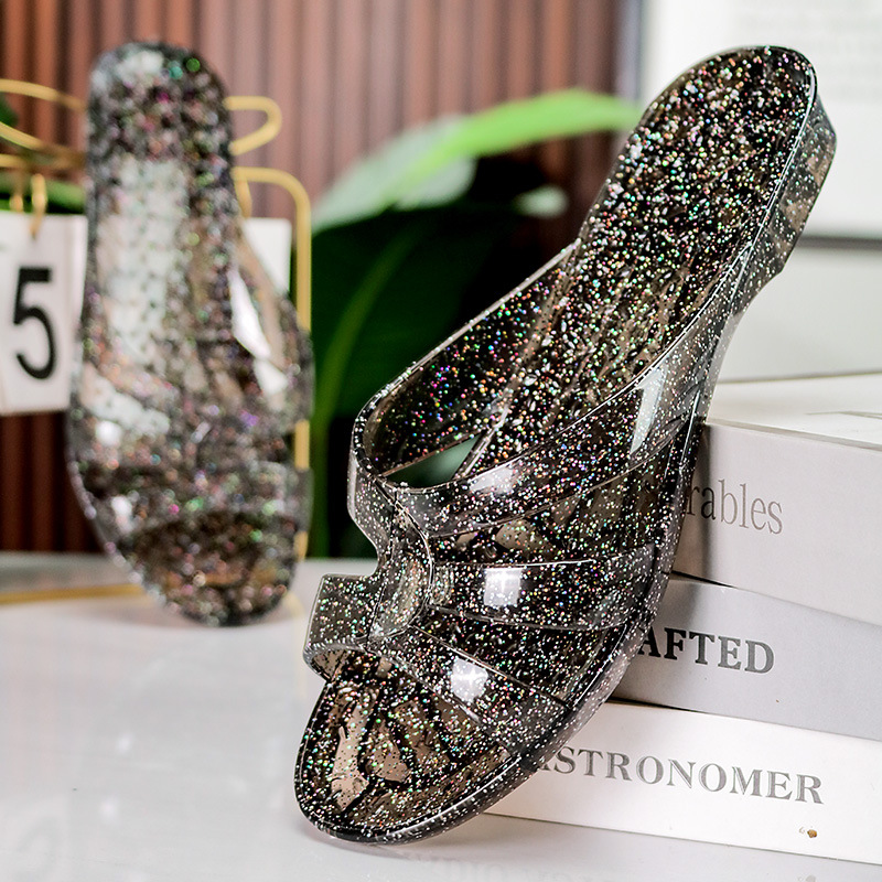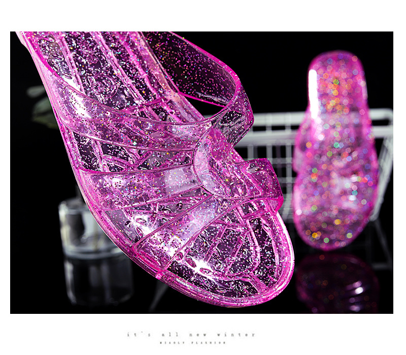 크리스탈 슬리퍼 여성용 플라스틱 투명 접착제 이상 냉동 로우 힐 한국식 실내 홈 여름 날 원피스 몰딩