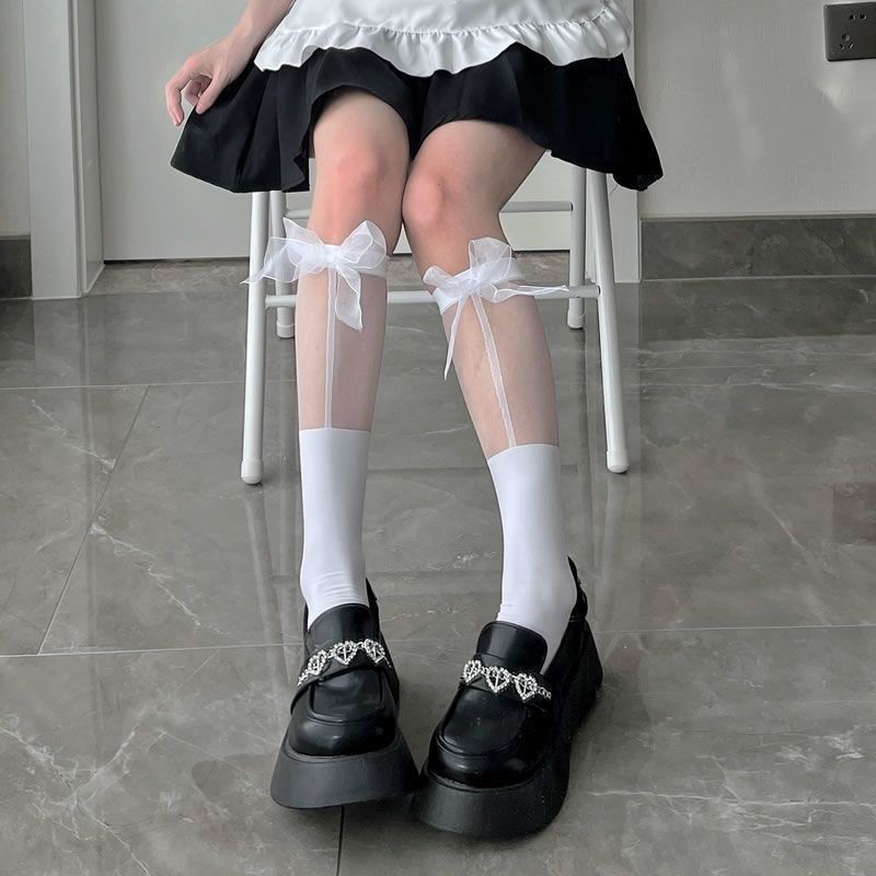 여자의 여름 얇은 활 중간 길이 스타킹 중공 스티칭 레이스 스타킹 높은 JK 소녀 로리타 커프 스타킹스토어 가기