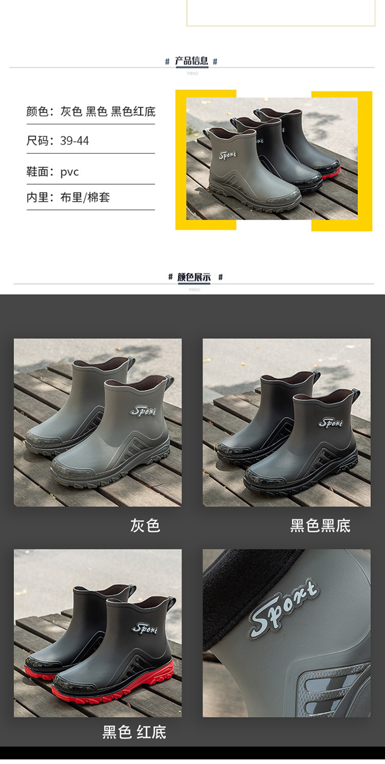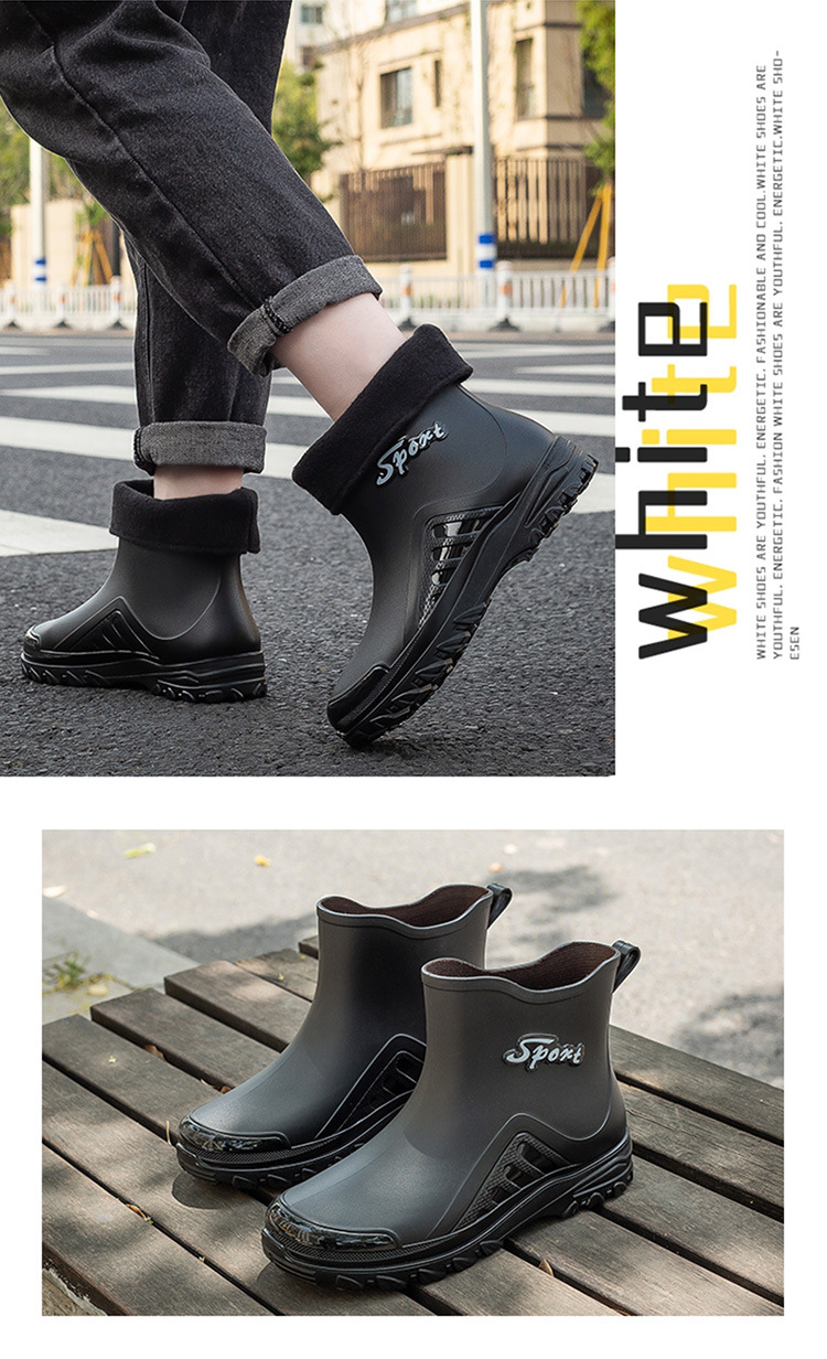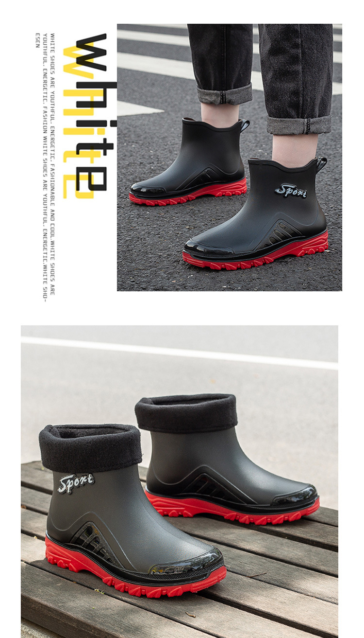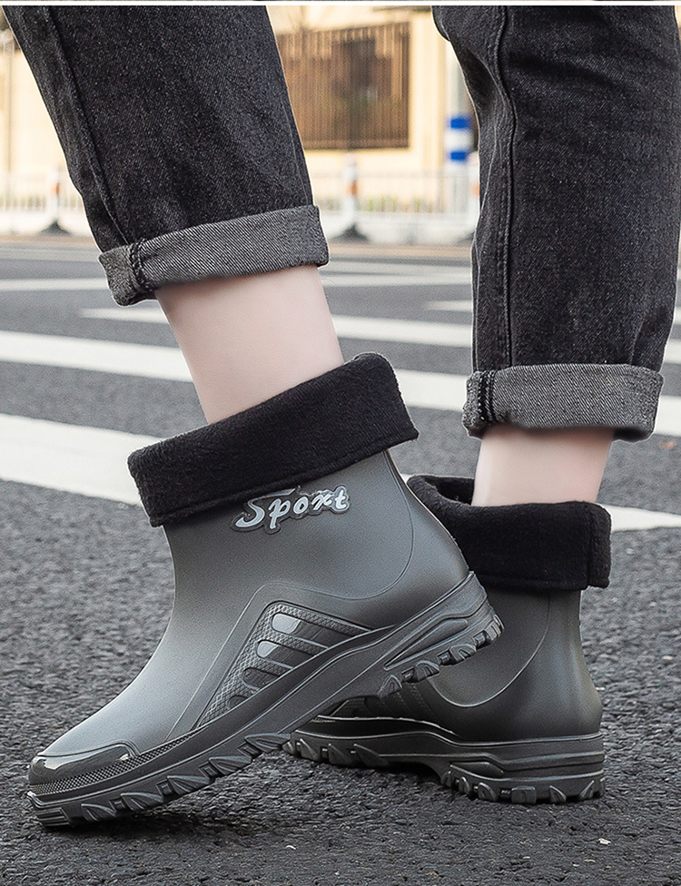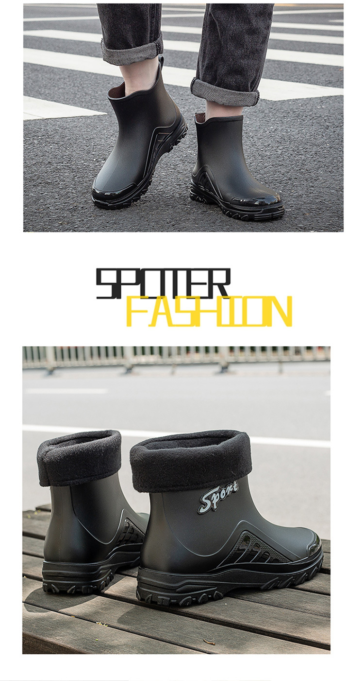 레인 부츠 남자의 미드 튜브 레인 부츠 낮은 튜브 물 신발 패션 미끄럼 방지 방수 짧은 튜브 두꺼운 바닥 기모 내마모성 재고 도매