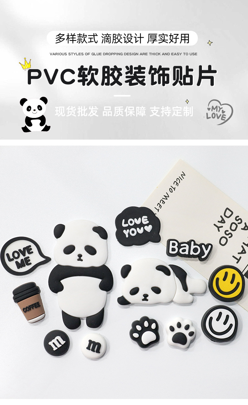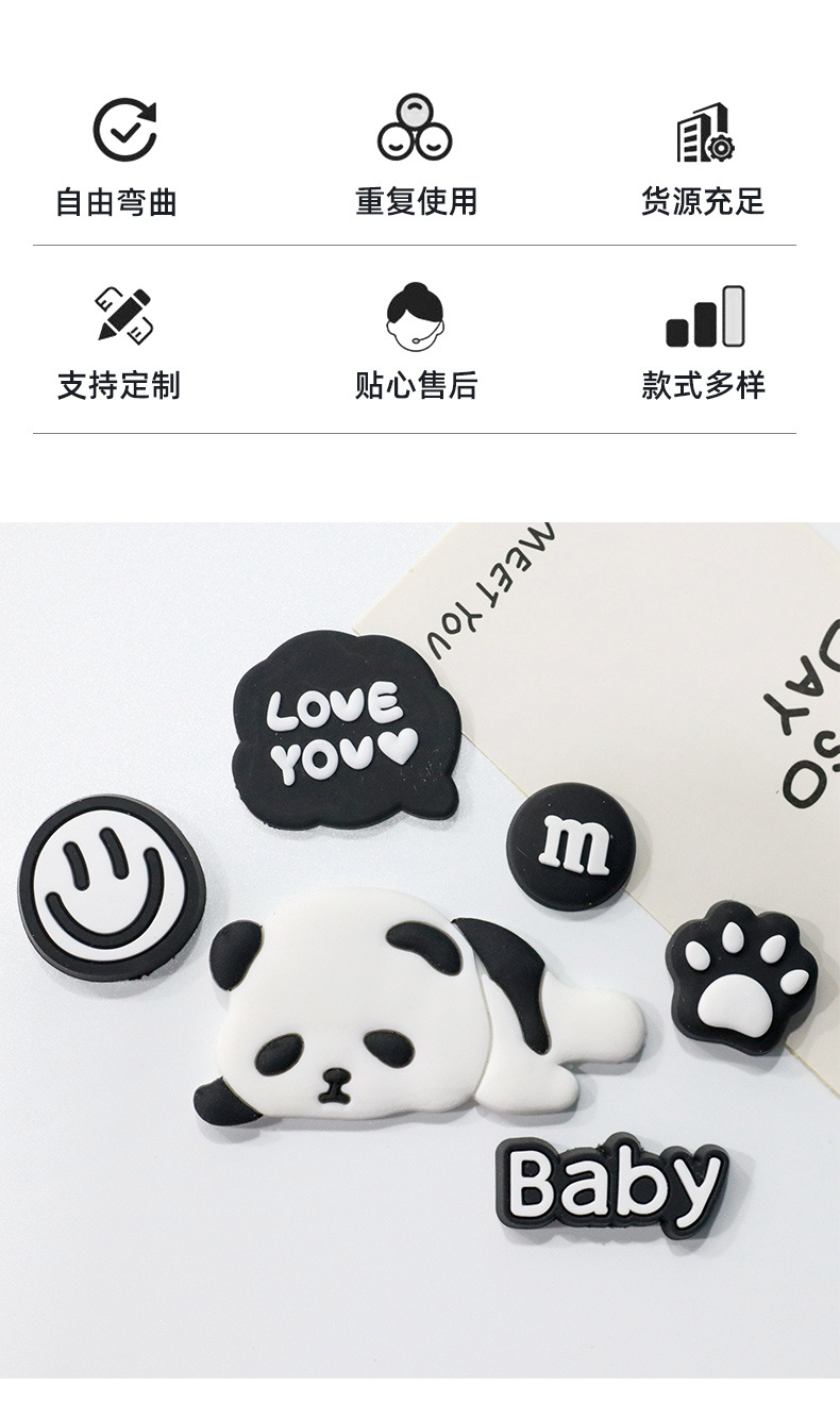팬더 슬리퍼 신발 버클 액세서리 구멍 신발 꽃 부드러운 고무 만화 PVC 드롭 플라스틱 DIY 냉장고 스티커 물 컵 장식 스티커