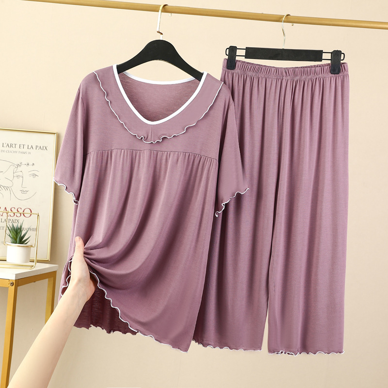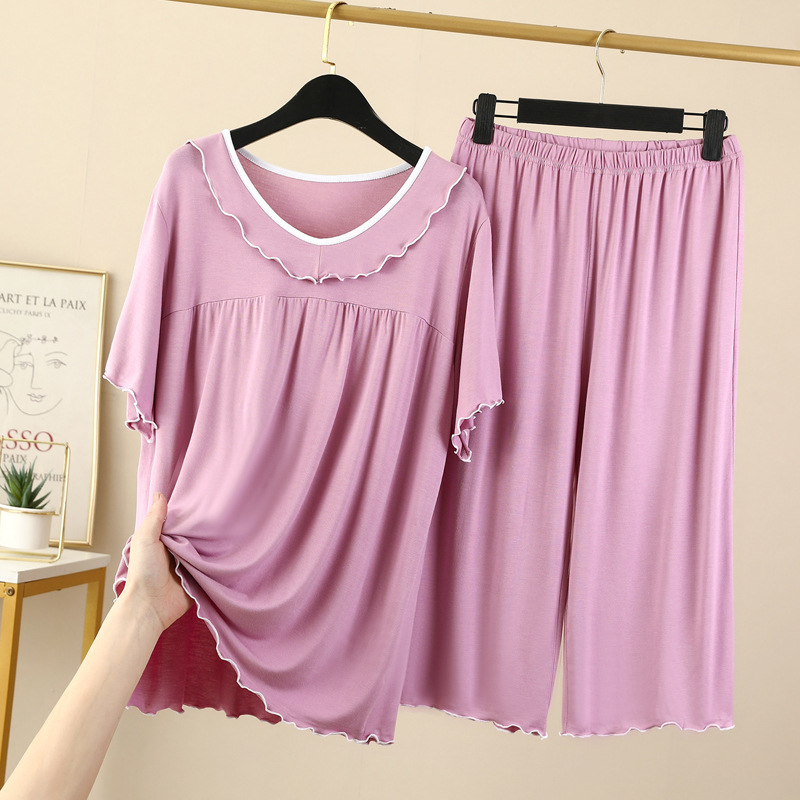 모달 잠옷 여성 여름 2025 신상 반팔 7부 바지 대형 사이즈 얇은 캐주얼 심플 홈웨어 투피스 세트