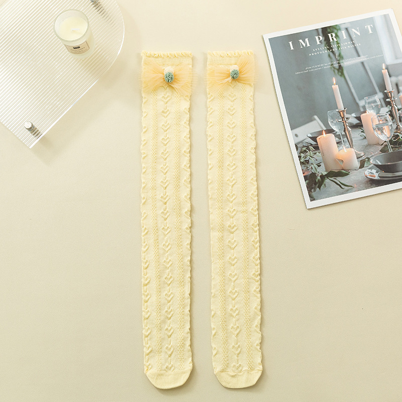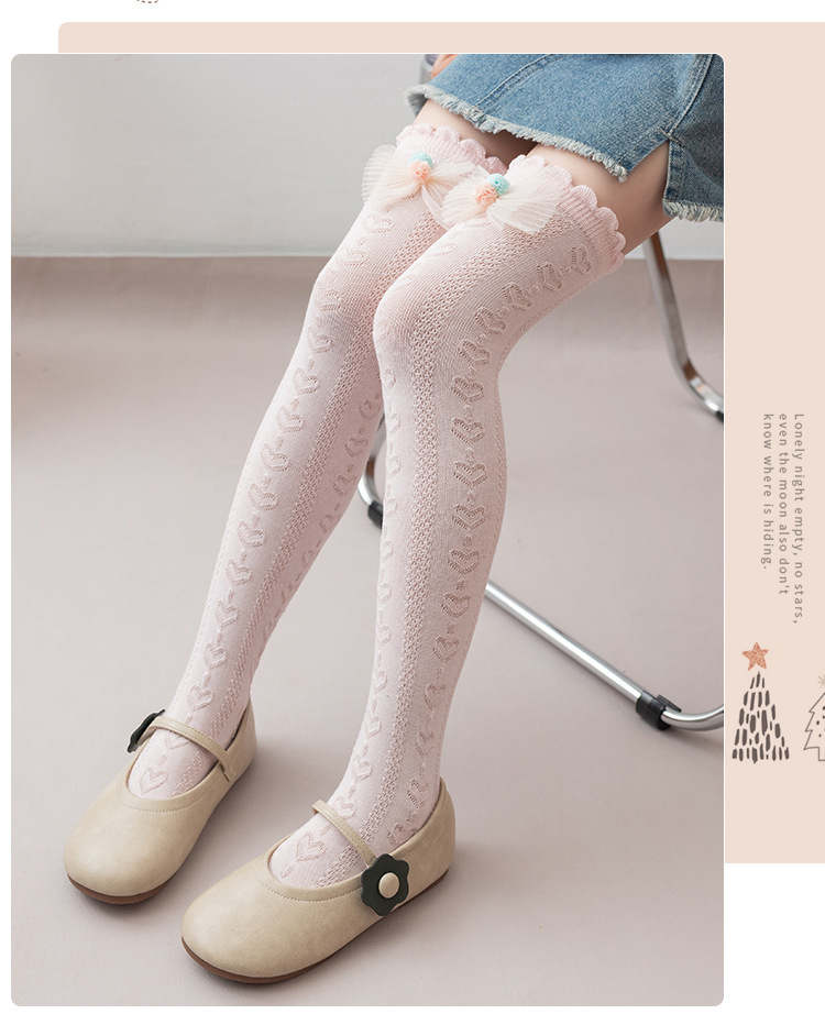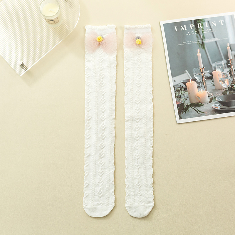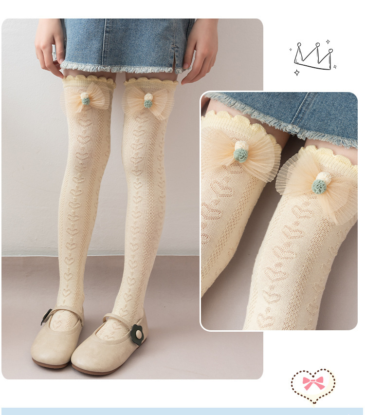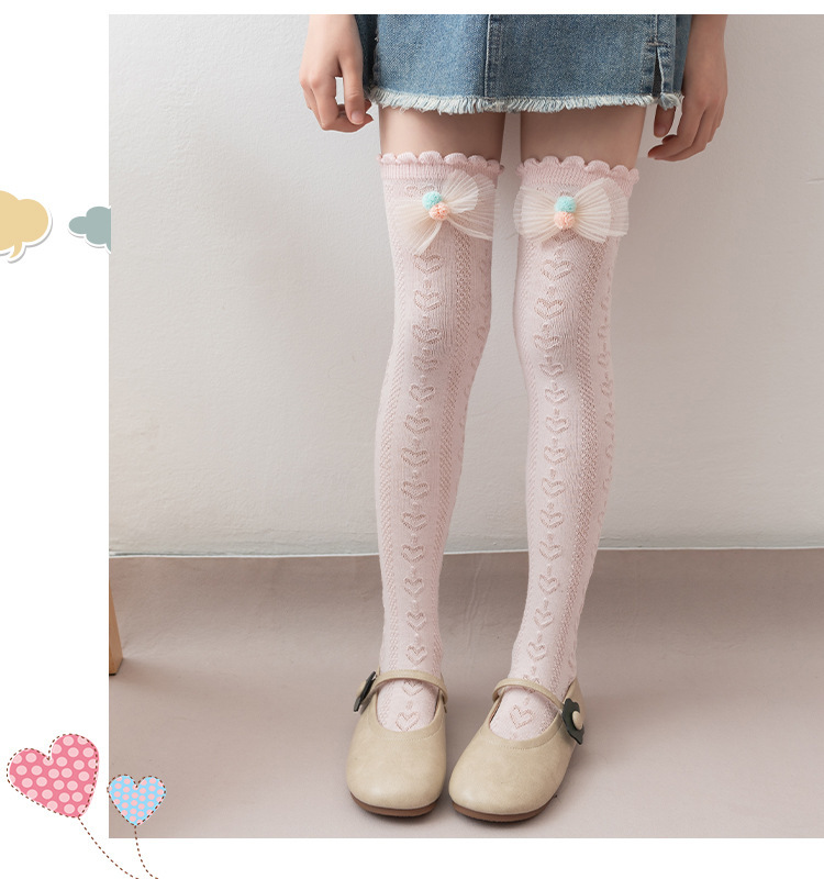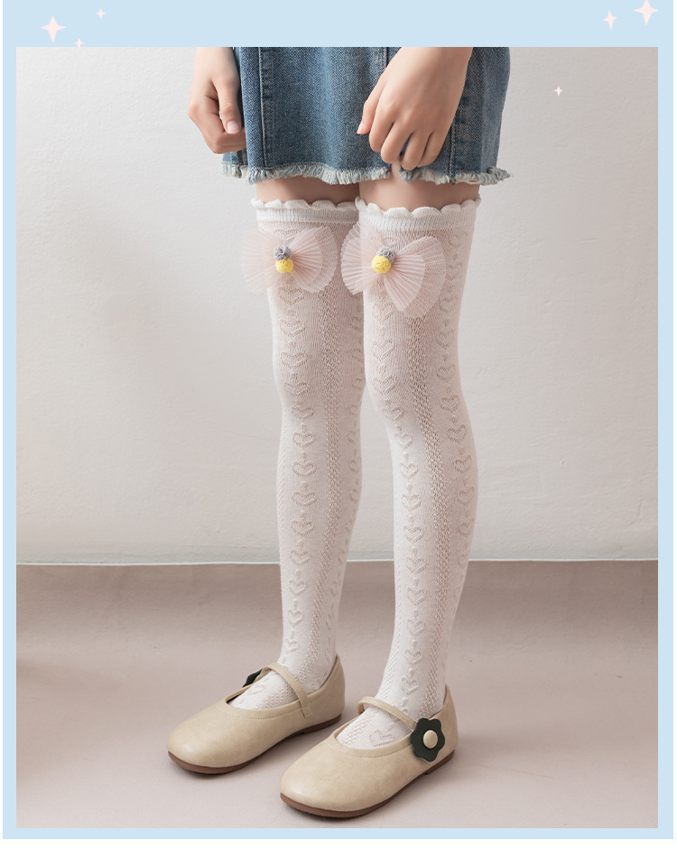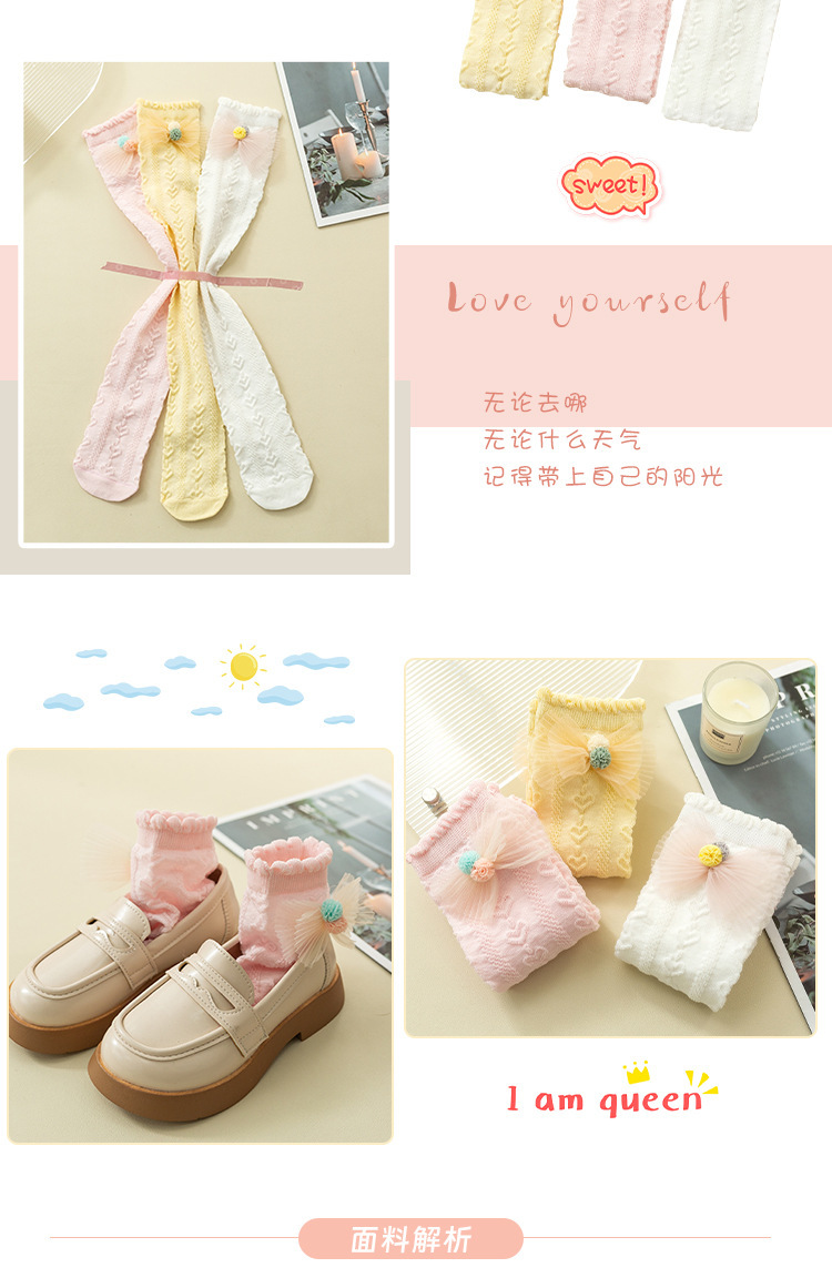 儿童袜子韩版网纱蝴蝶结洛丽塔女童袜子JK粉色白纯色公主