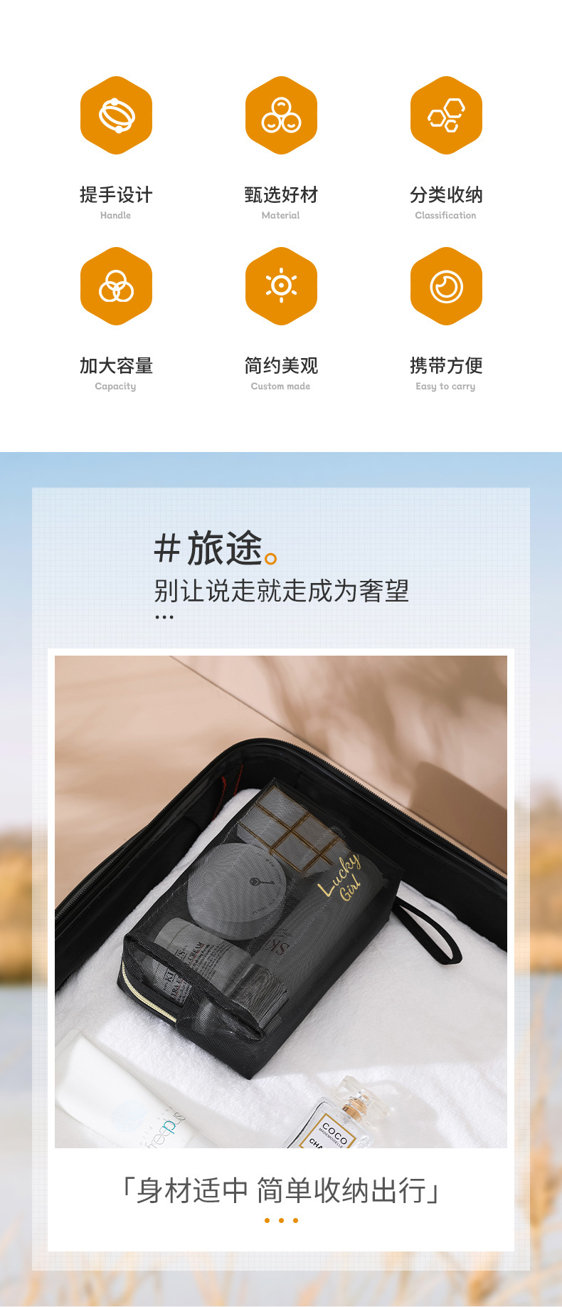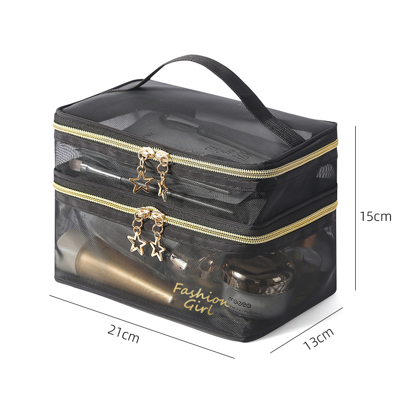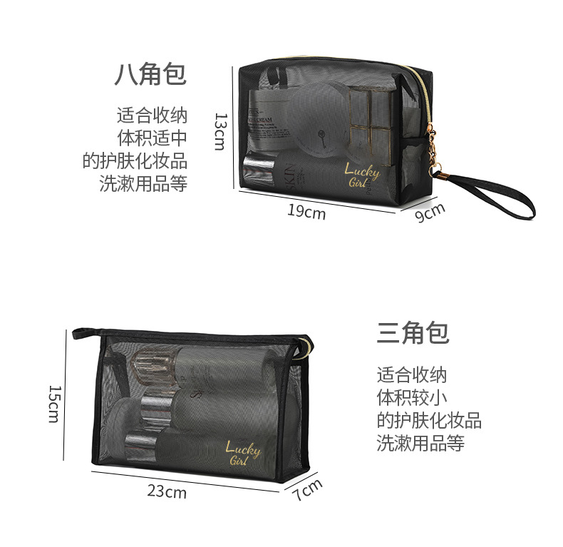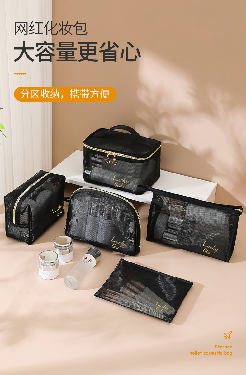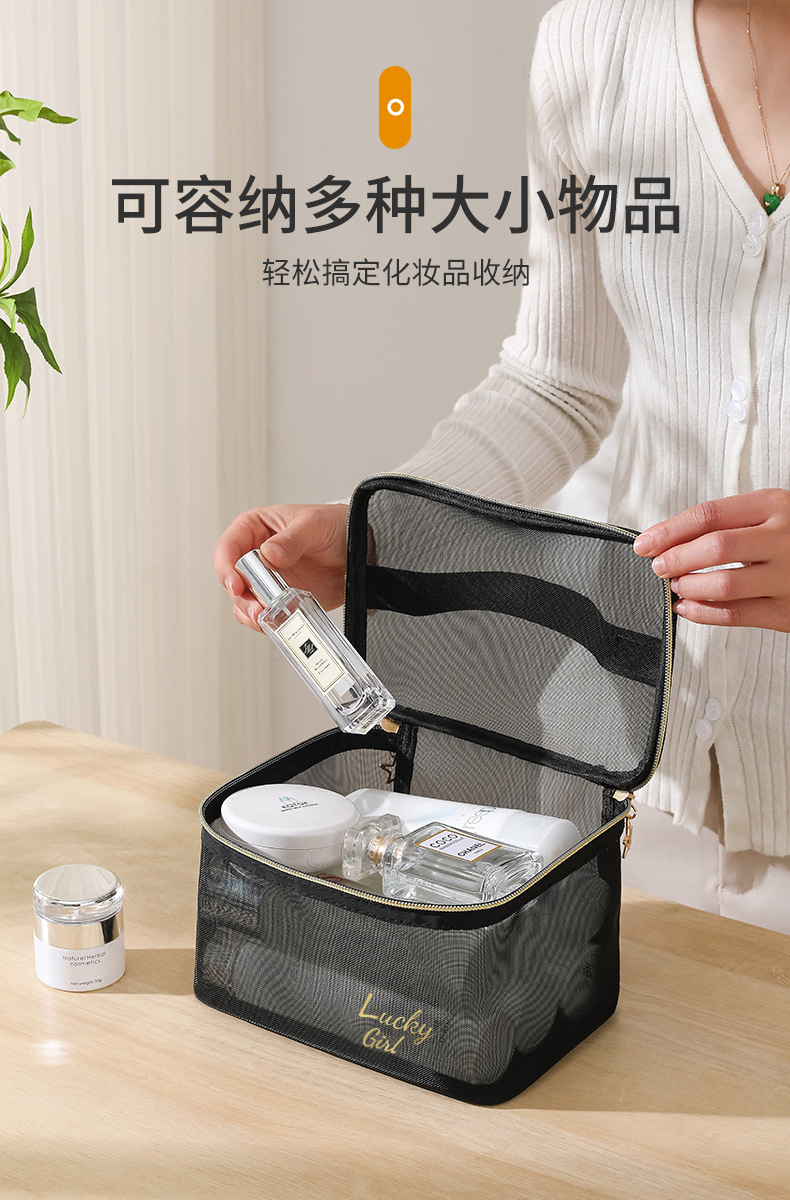 나일론 메쉬 화장품 가방 화장품 보관 가방 대용량 휴대용 투명 여행 메쉬 세척 가방 세트 로고스토어 가기