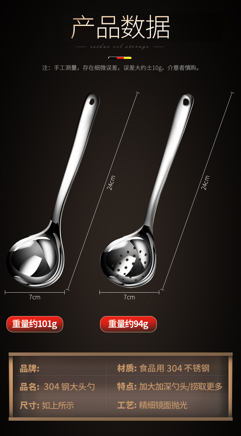 304 스테인레스 스틸 수프 스푼 가정용 소쿠리 주방 대형 수프 스푼 두꺼운 깊은 냄비 숟가락 주방 용품 도매