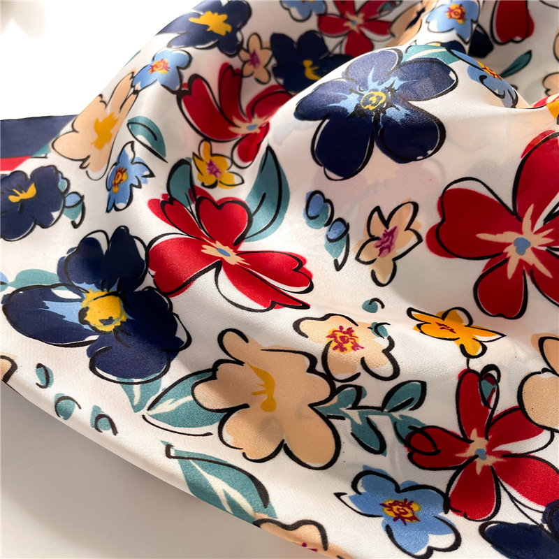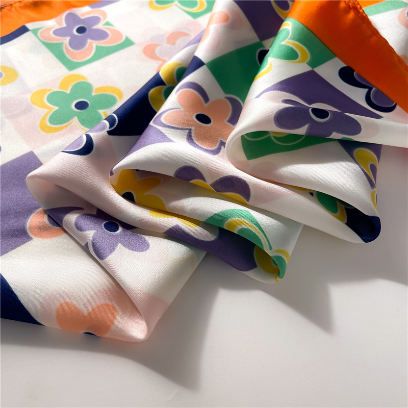 플라워 스퀘어 스카프 컬러 매칭 장식 실크 스카프 모조 실크 레이디 스퀘어 스카프 70x70cm 헤드 스카프 숄 여행 스카프스토어 가기