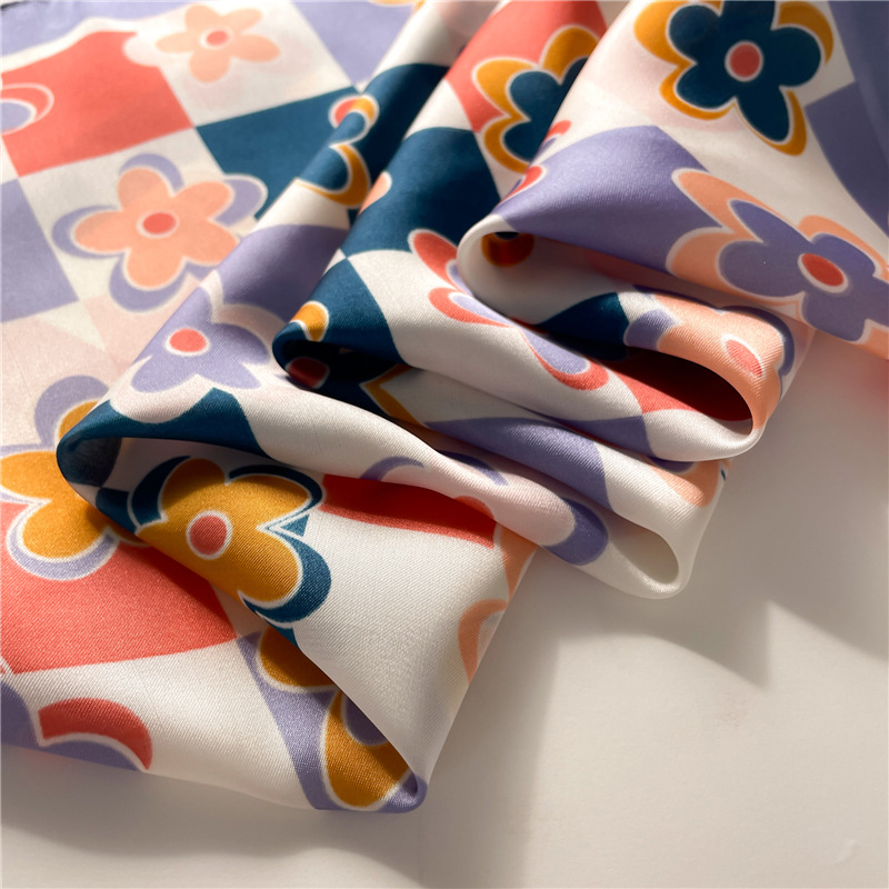 플라워 스퀘어 스카프 컬러 매칭 장식 실크 스카프 모조 실크 레이디 스퀘어 스카프 70x70cm 헤드 스카프 숄 여행 스카프