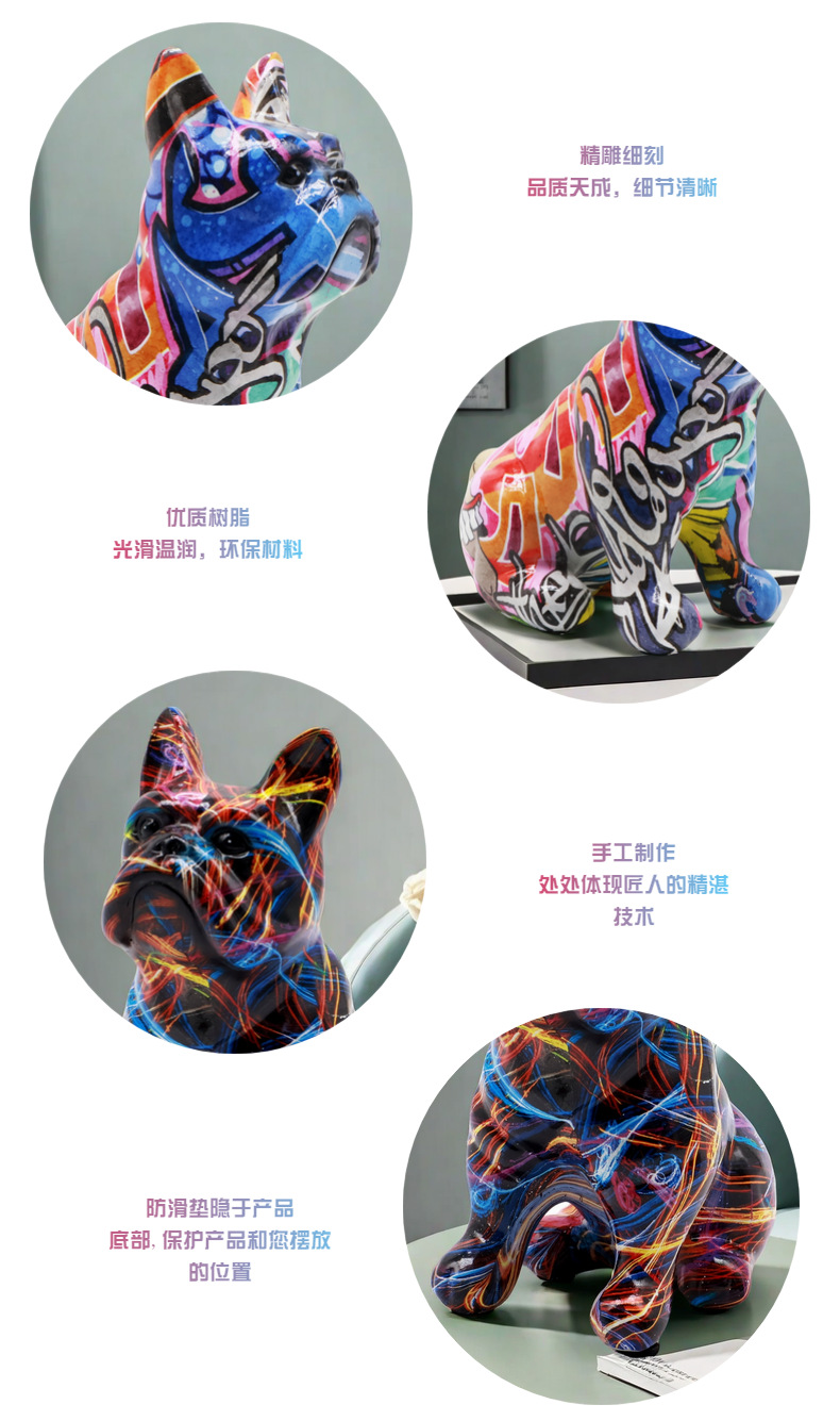 국경 유럽 스타일의 새로운 창조적 인 다채로운 불독 장식품 홈 거실 장식 수지 공예 선물스토어 가기