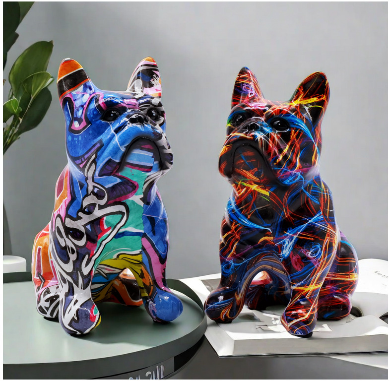 국경 유럽 스타일의 새로운 창조적 인 다채로운 불독 장식품 홈 거실 장식 수지 공예 선물