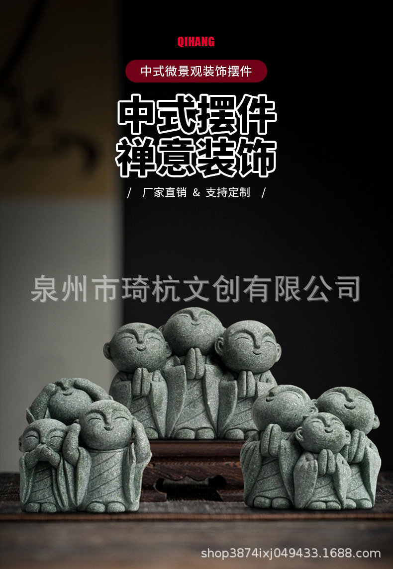 교토 카시모토 스타일 어항 수족관 분재 귀여운 일본식 스님 데스크탑 장식품 홈 차 애완 동물 장식