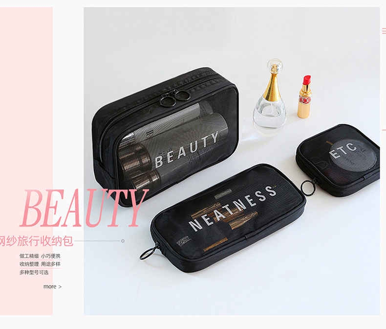 한국 스타일 메쉬 메이크업 가방 대용량 여행 휴대용 워시 백 간단한 휴대 화장품 보관 가방스토어 가기