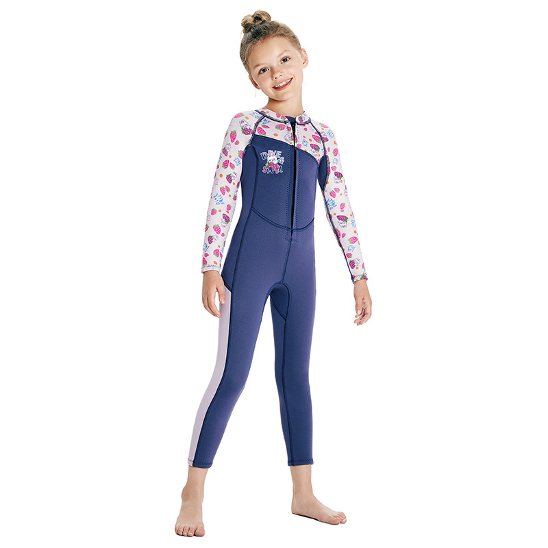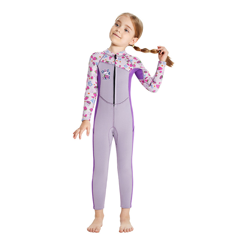 어린이 다이빙 세트 2.5mm 원피스 긴 소매 따뜻한 다이빙 세트 여자 스노클링 서핑 수영복 자외선 차단제 해파리 세트