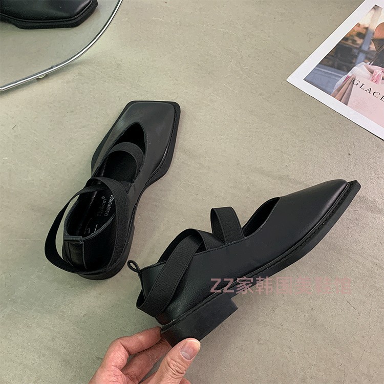 발레 슈즈 여성용 레트로 스트랩 우아한 스퀘어 헤드 로우 힐 메리 레트로 캐주얼 소프트 페이스 미드 힐 발레스토어 가기