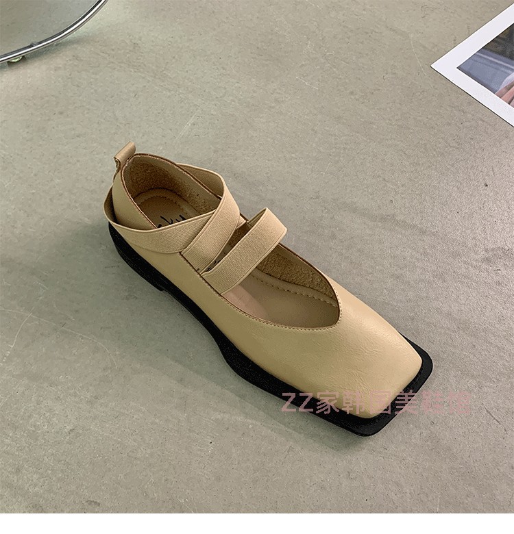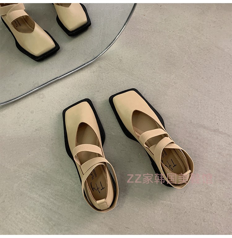발레 슈즈 여성용 레트로 스트랩 우아한 스퀘어 헤드 로우 힐 메리 레트로 캐주얼 소프트 페이스 미드 힐 발레