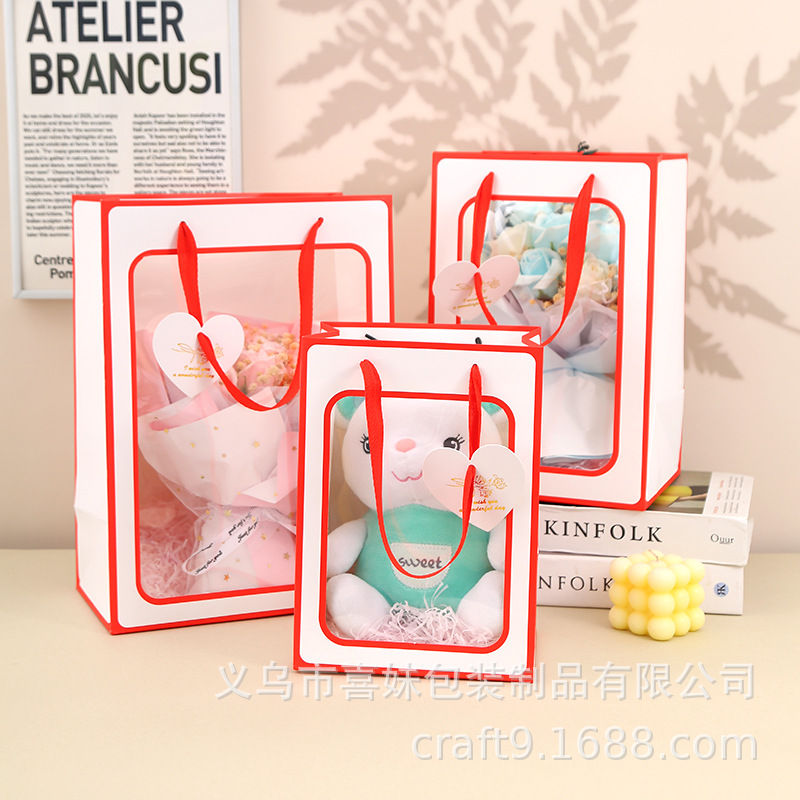 크리스마스 투명 창문 선물 가방 종이 가방 생일 선물 인형 꽃다발 간식 휴대용 포장 가방스토어 가기